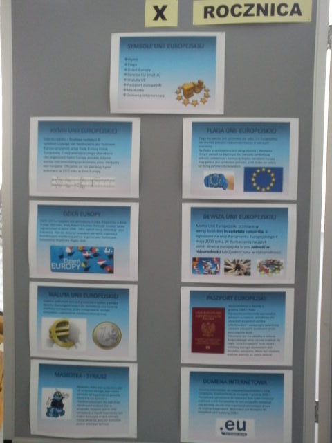 Jak co roku w naszej szkole obchodziliśmy kolejnej rocznicę, tym razem X, wstąpienia Polski do Unii Europejskiej oraz Dni Unii Europejskiej (9 V). W maju tego roku odbywały się również wybory do Parlamentu Europejskiego.