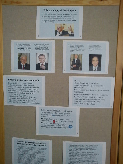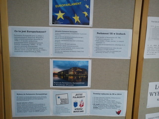 Członkowie SKE „Centauri" przygotowali dla społeczności szkolnej informacje dotyczące: dziesięciolecia Polski w UE, Europarlamentu oraz przebiegu prawyborów w naszej szkole.