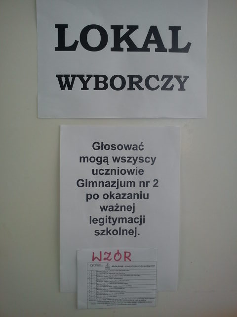 Dnia 19 V 2014 r. w szkole odbyły się Młodzieżowe Prawybory , w których wzięły udział klasy I, II i III. Uczniowie mogli głosować w myśl zasad demokratycznych wyborów, na przerwach lub przed i po lekcjach. Nad przebiegiem wyborów czuwała Młodzieżowa Komisja Wyborcza oraz opiekun p. Katarzyna Janicka.