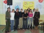 - Dnia 17 listopada o godzinie 15.00 odbyło się "I europejskie spotkanie przy herbatce". Zostaliśmy zaproszeni na nie przez Gimnazjum nr 1. Gospodarze jako pierwsi pokazali swój występ, którego tematem były bajki i baśnie. Następnie na scenę wkroczyliśmy my- SKE,,Centauri”. Zaprezentowaliśmy polską wokalistkę, znaną na całym świecie MANDARYNĘ. Przy naszym występie wszyscy świetnie się bawili. Publikę zabawialiśmy również skeczem.