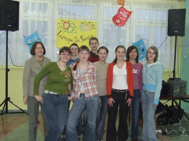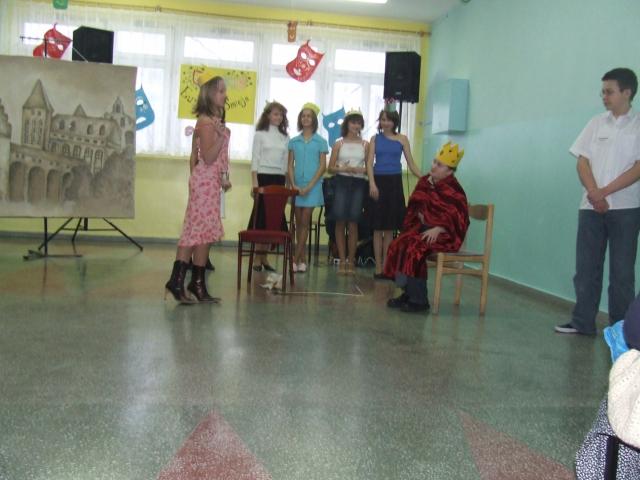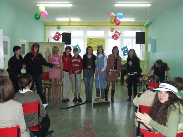 Między prezentacjami szkół bawiliśmy się podziwiając występy kabaretowe prezentowane przez uczniów naszego gimnazjum: Daniela Ostaszewskiego i Dawida Czekajskiego. Na koniec jak tradycja nakazuje odbyła się dyskoteka.
