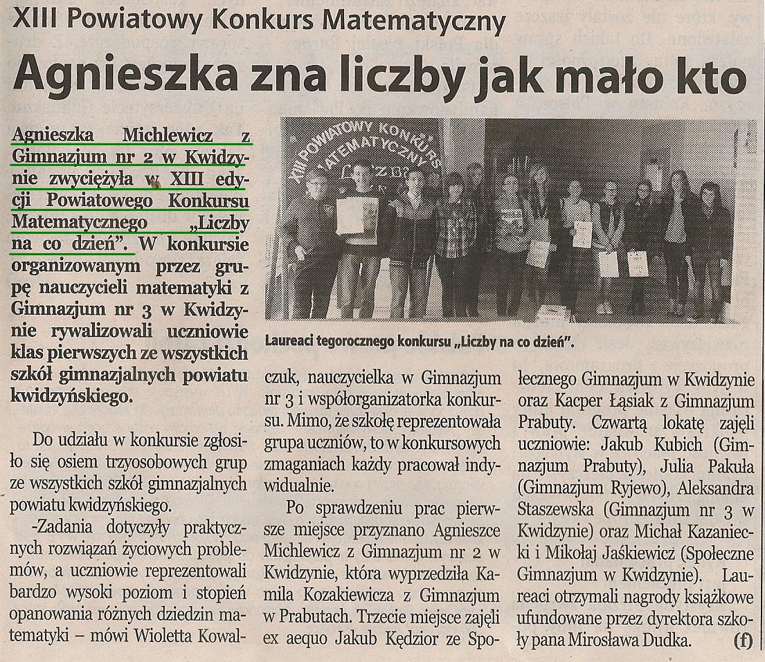 Agnieszka zna liczby jak mało kto - 29 kwietnia 2014r. - Kurier Kwidzyński