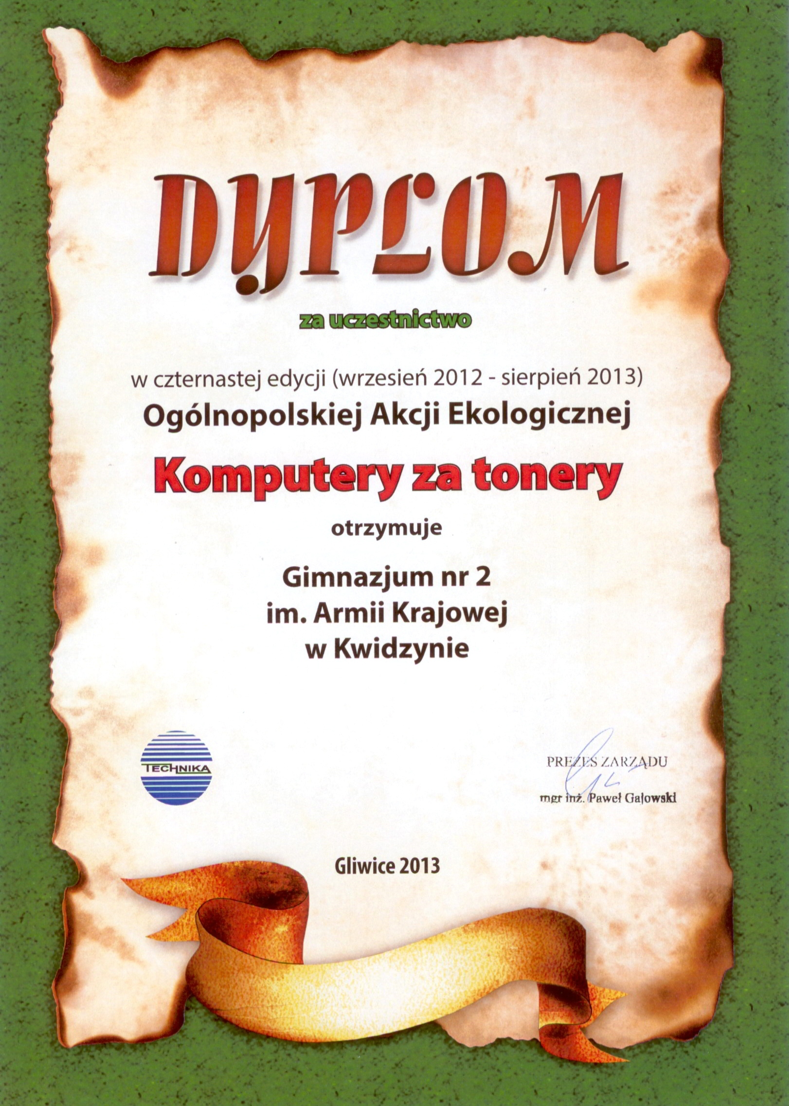 - Udział w Ogólnopolskiej Akcji Ekologicznej "Komputery za tonery"
