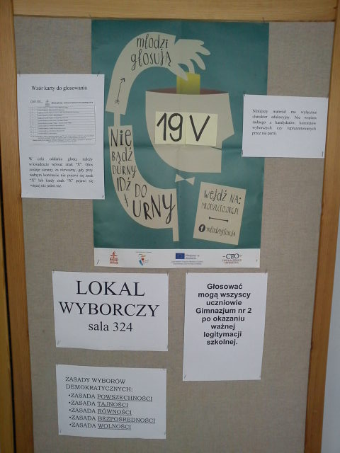 Dnia 19 V 2014 r. w szkole odbyły się Młodzieżowe Prawybory , w których wzięły udział klasy I, II i III. Uczniowie mogli głosować w myśl zasad demokratycznych wyborów, na przerwach lub przed i po lekcjach. Nad przebiegiem wyborów czuwała Młodzieżowa Komisja Wyborcza oraz opiekun p. Katarzyna Janicka.