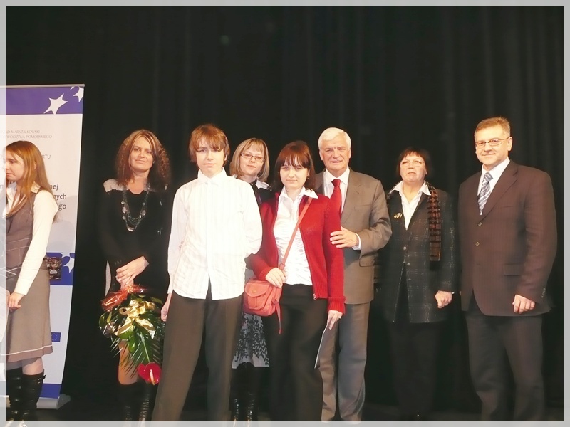 Dnia 15 grudnia 2009r. w Teatrze Wybrzeże w Gdańsku odbyła się uroczystość wręczania stypendiów dla uczniów gimnazjów i szkół ponagimnazjalnych przez Marszałka Województwa Pomorskiego Jana Kozłowskiego w ramach „Programu pomocy stypendialnej dla uczniów szczególnie uzdolnionych z obszaru województwa pomorskiego” na rok szkolny 2009/2010. Wśród uczniów nagrodzonych znalazł się uczeń naszego gimnazjum Paweł Tomasik, a także nasza tegoroczna absolwentka Lilianna Żydek (obecnie uczennica II LO w Kwidzynie). Wyróżnionym uczniom towarzyszyła dyrektor szkoły Małgorzata Wróblewska oraz nauczyciele Barbara Szuwarowska i Alicja Tubaja. |