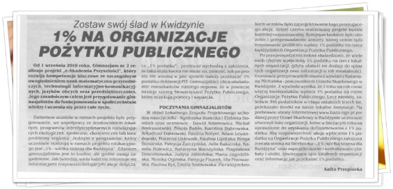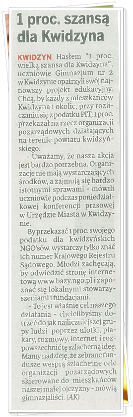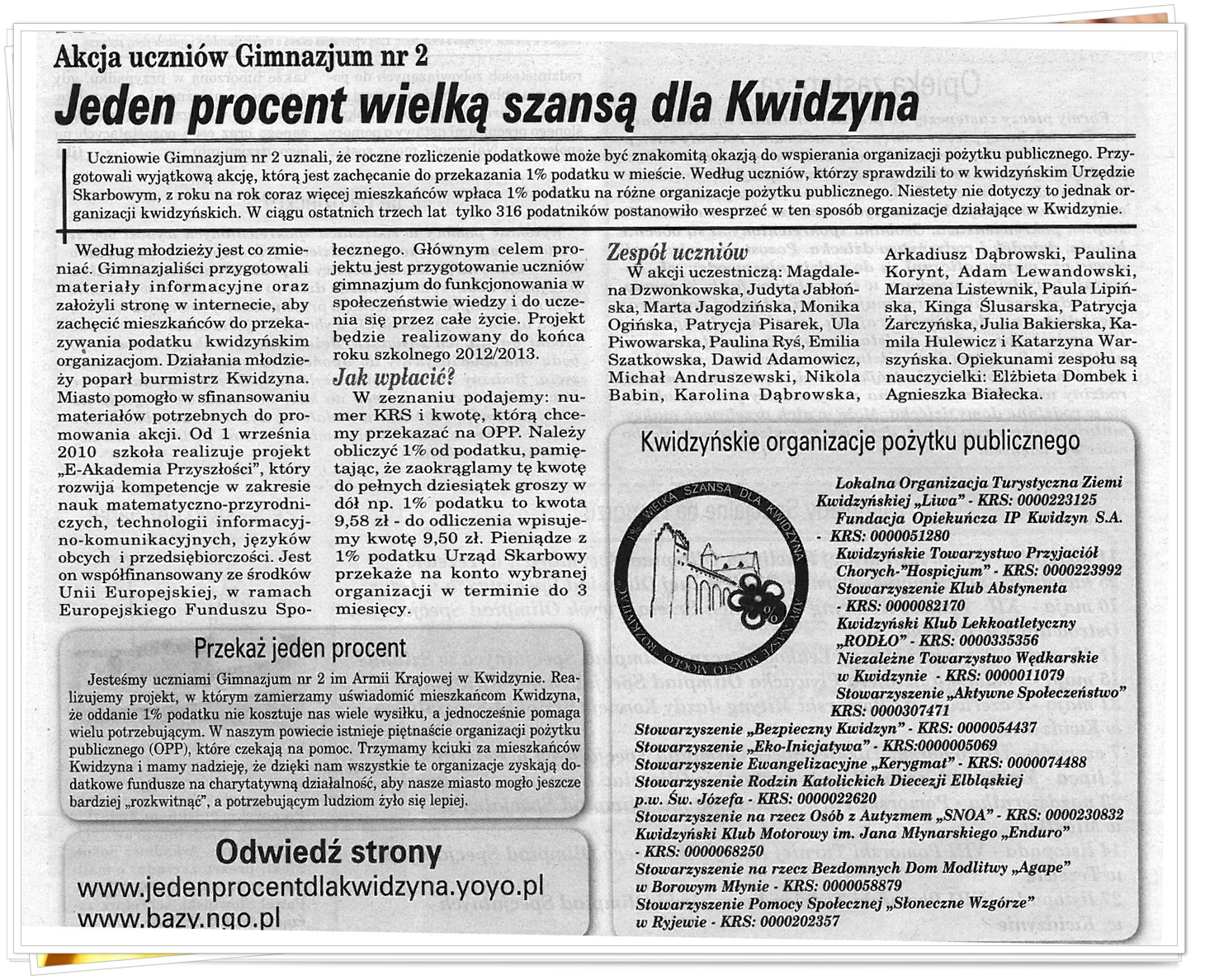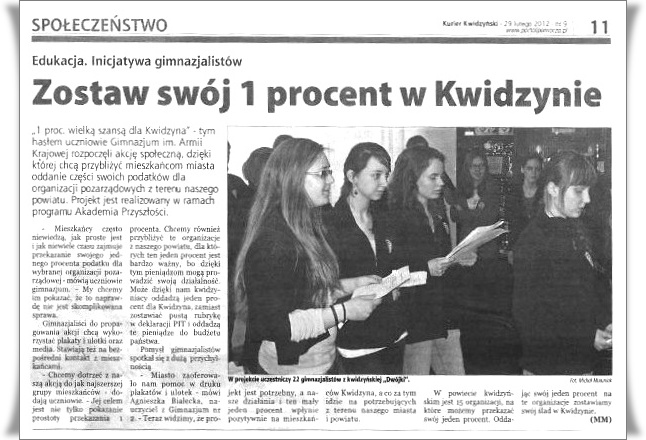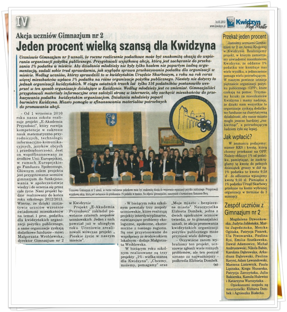 1 % szansą dla Kwidzyna - 9 marca 2012r. Kurier Kwidzyński