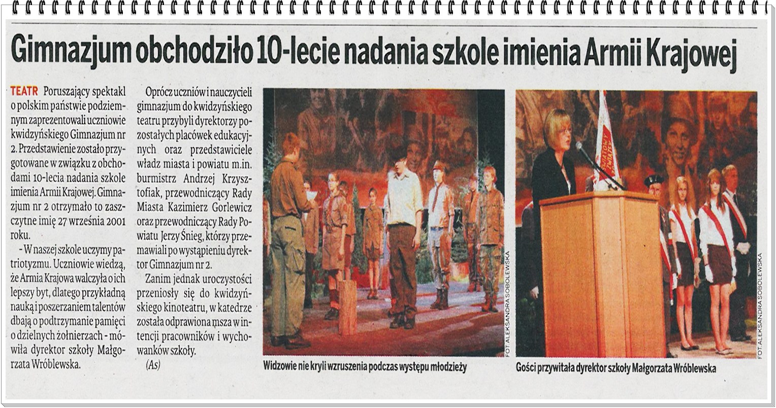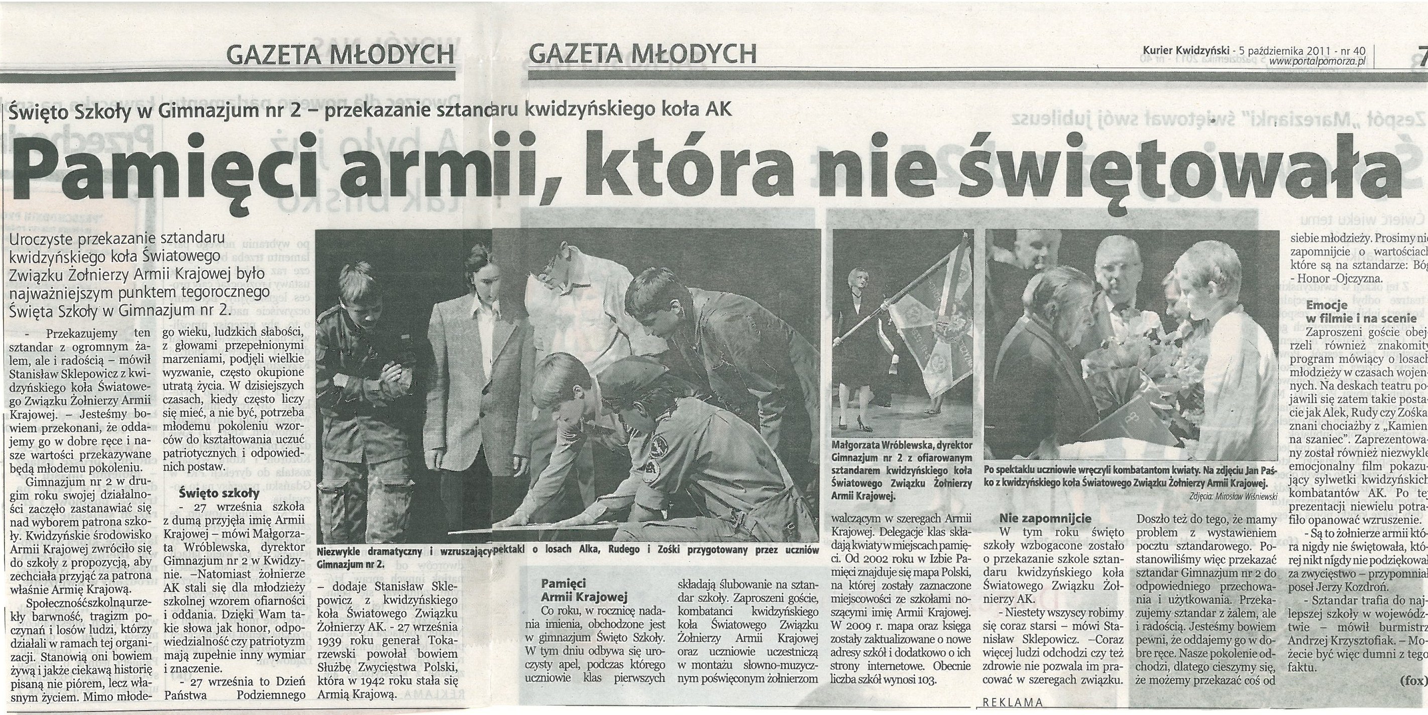 Gimnazjum obchodziło 10-lecie nadania szkole imienia Armii Krajowej - 30 września 2011r. Kurier Powiatu Kwidzyńskiego