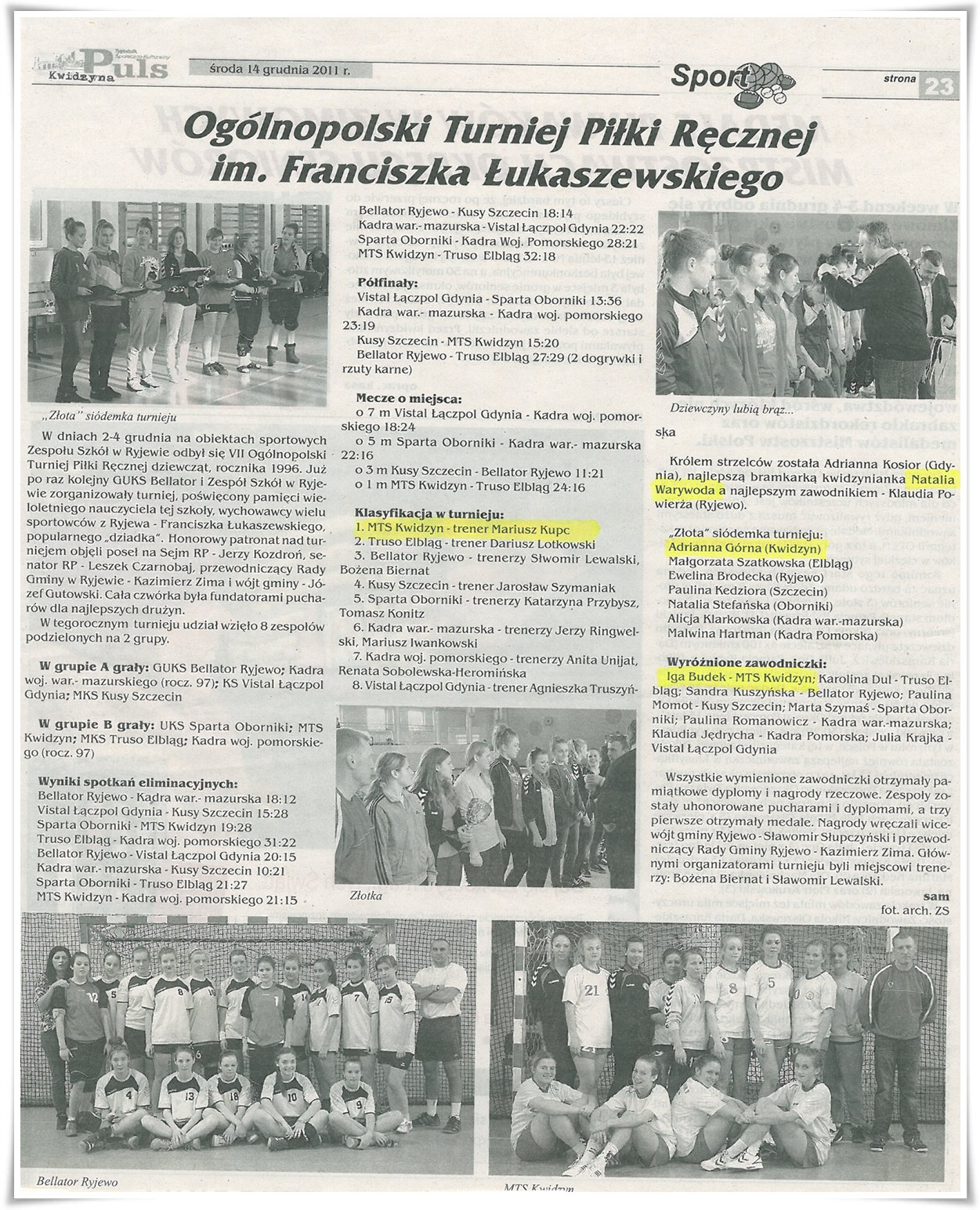 Ogólnopolski Turniej Piłki Ręcznej - 14 grudnia 2011r. Puls Kwidzyna