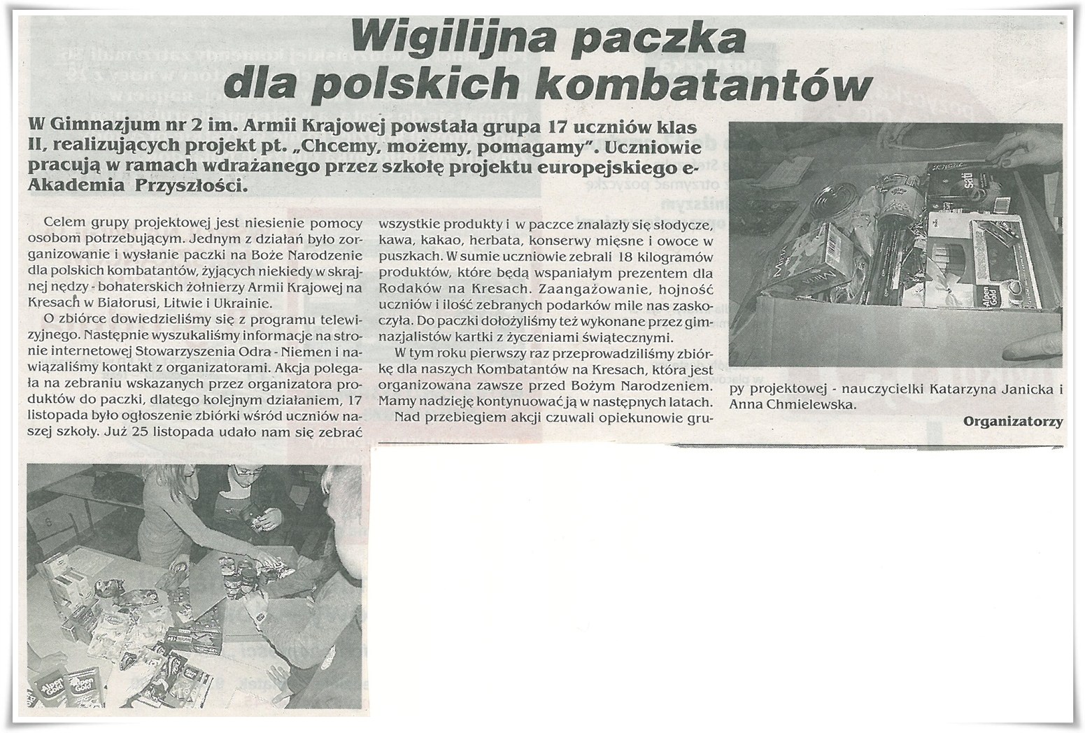Akcja uczniów Gimnazjum nr 2 - 4 kwietnia 2012r. Puls Kwidzyna