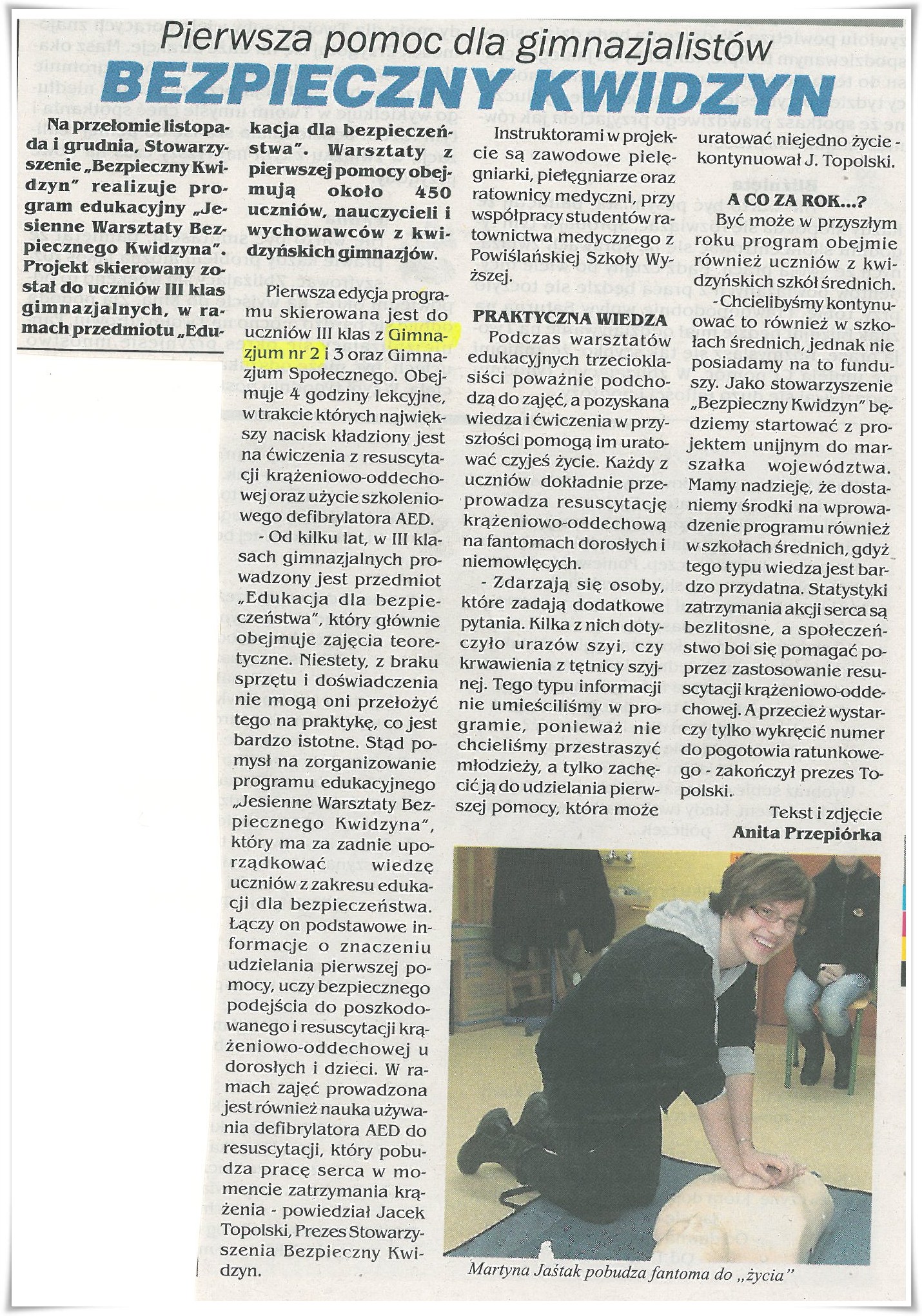 Pierwsza pomoc dla gimnazjalistów BEZPIECZNY KWIDZYN