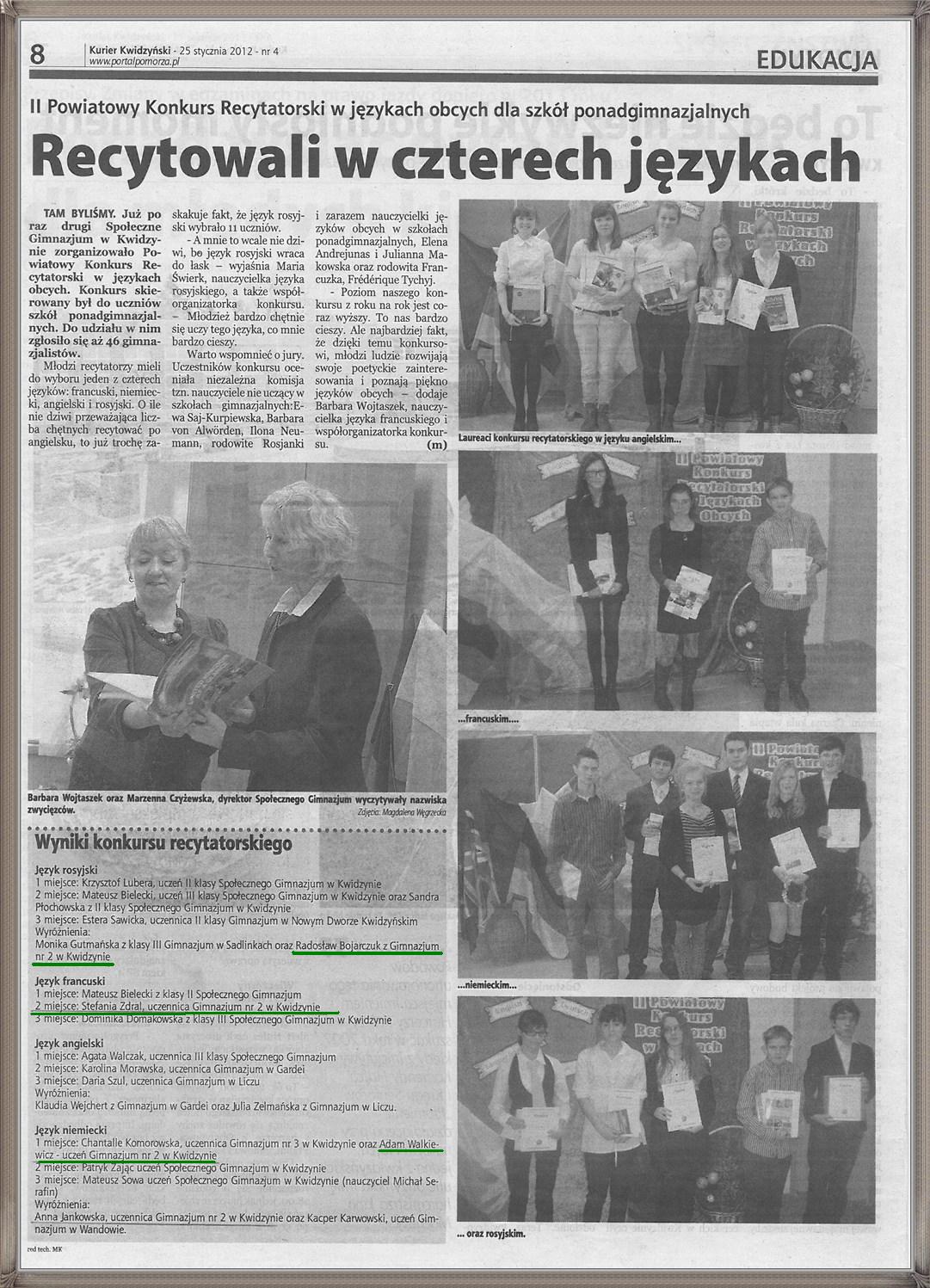 Recytowali w czterech językach - 25 stycznia 2012r. Kurier Kwidzyński