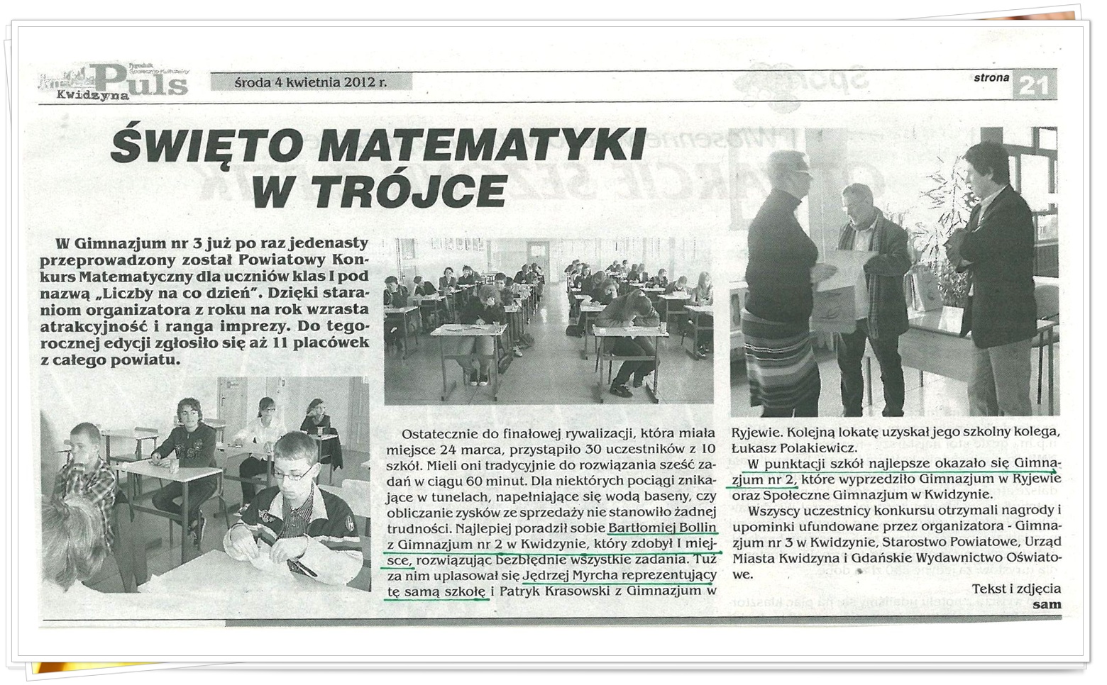 Święto matematyki w Trójce - 4 kwietnia 2012r. Puls Kwidzyna