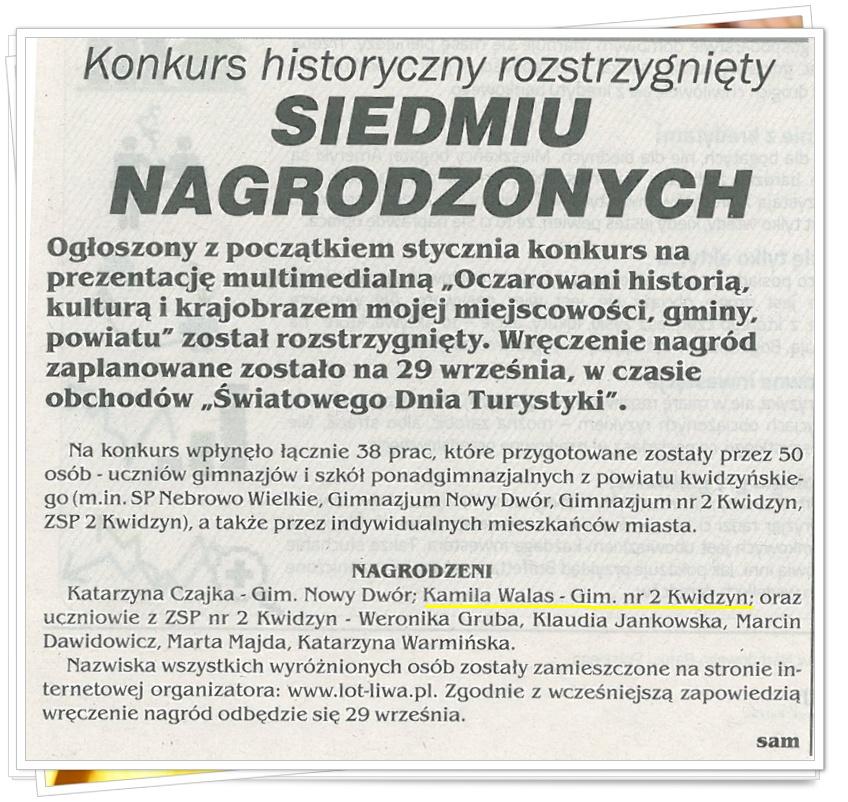 Konkurs historyczny rozstrzygnięty - Siedmiu nagrodzonych - 20 czerwca 2012r. Puls Kwidzyna