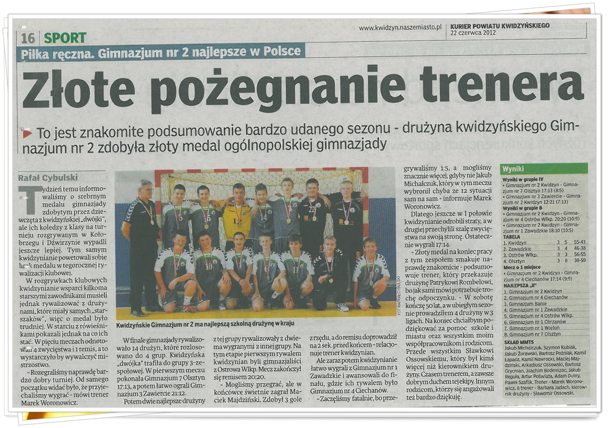 Złote pożegnanie trenera - 22 czerwca 2012r. Kurier Powiatu Kwidzyńskiego