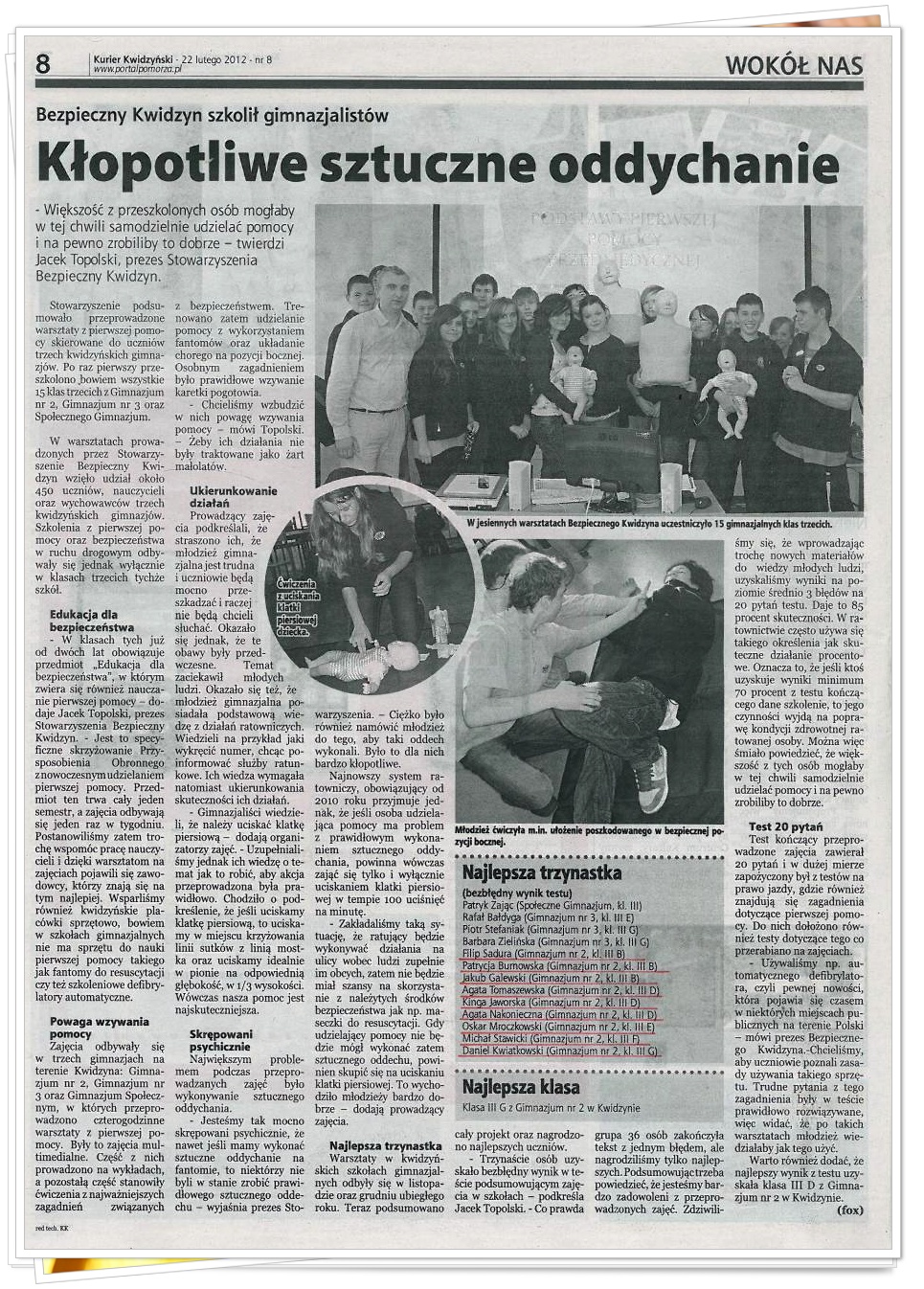Kłopotliwe sztuczne oddychanie - 22 lutego 2012r. Kurier Kwidzyński