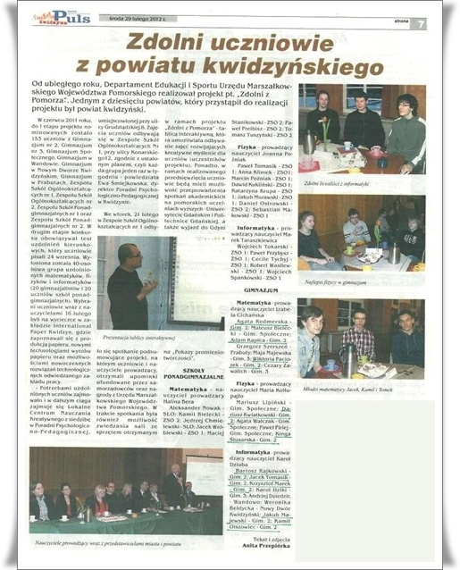 Zdolni z powiatu kwidzyńskiego - 29 lutego 2012r. Puls Kwidzyna