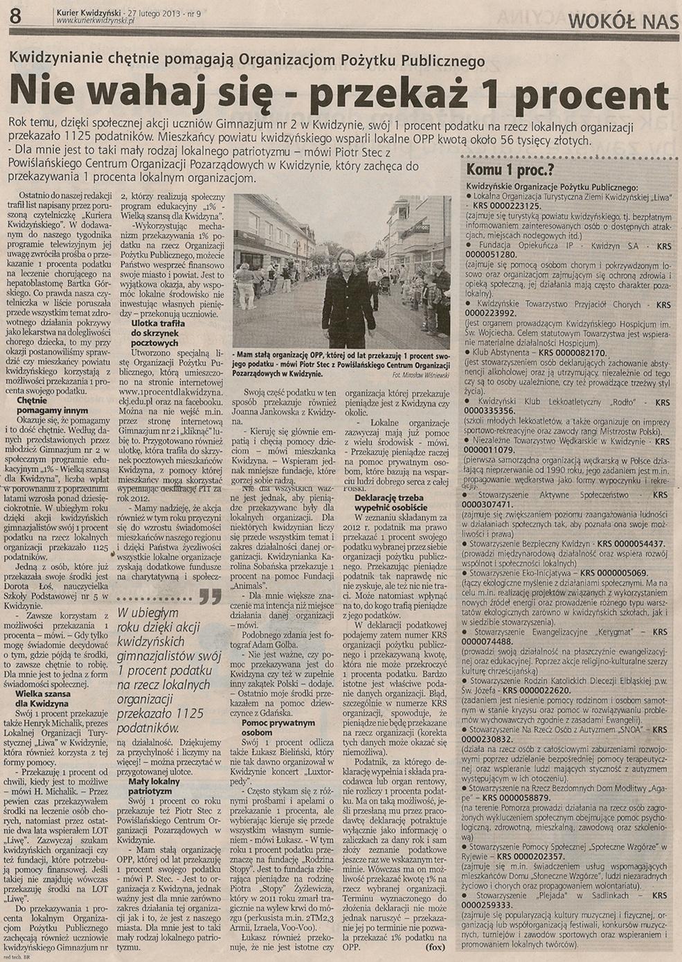 Nie wahaj się - przekaż 1 procent - 27 lutego 2013r. - Kurier Kwidzyński