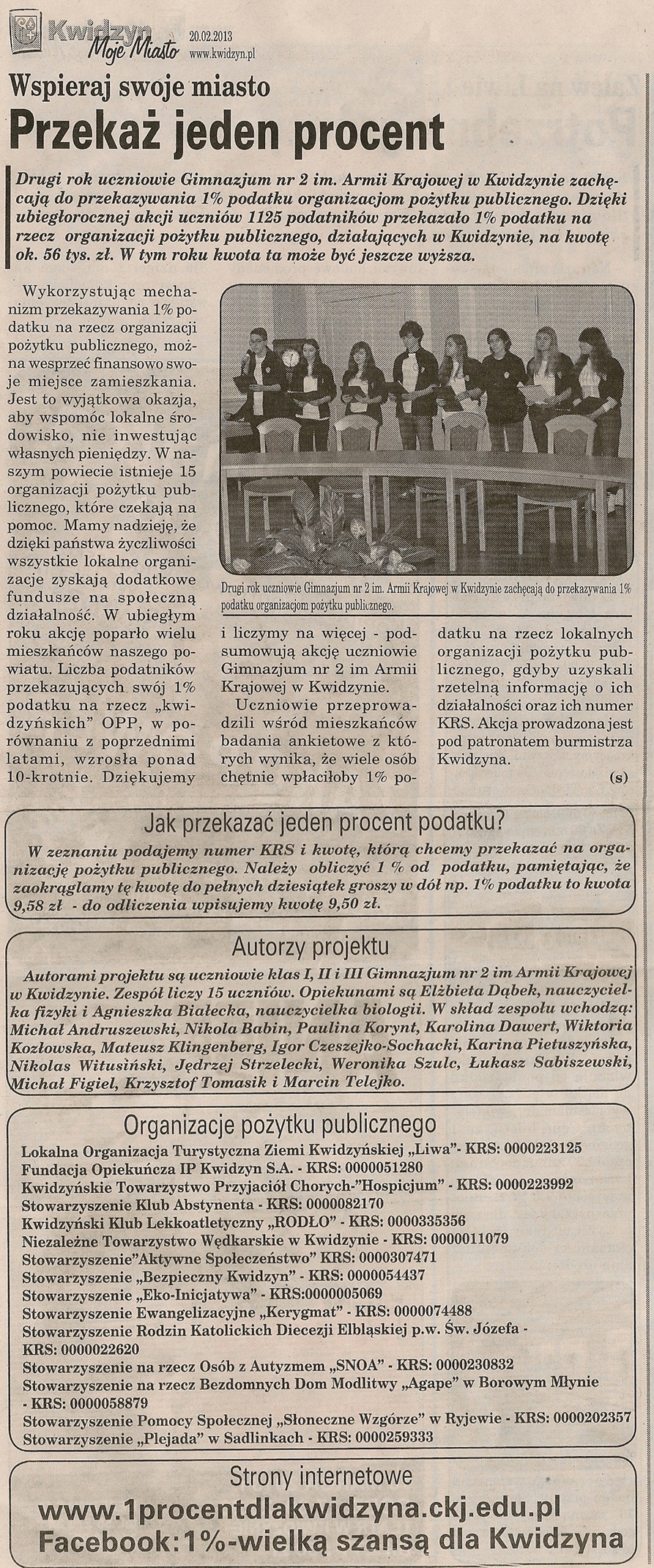 Akcja uczniów Gimnazjum nr 2 w Kwidzynie ... - 27 lutego 2013r. - Kurier Kwidzyński
