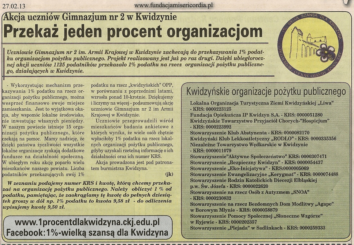 Przekaż jeden procent - 20 lutego 2013r. - Kwidzyn Moje Miasto