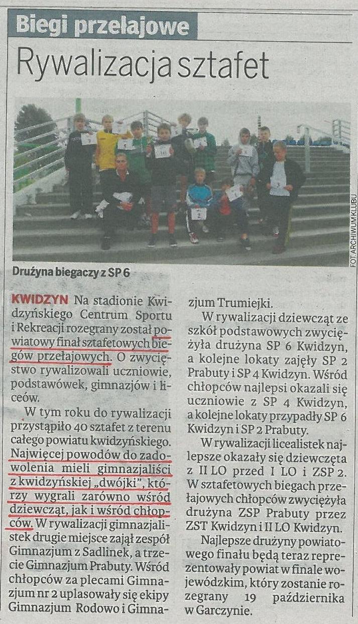 Biegi przełajowe. Rywalizacja sztafet - 19 października 2012r. Kurier Powiatu Kwidzyńskiego