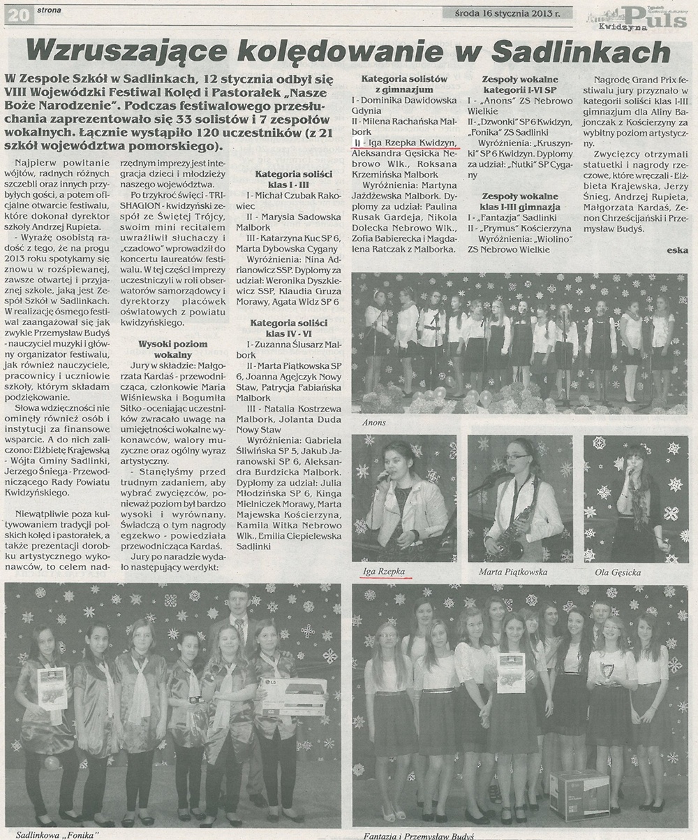 Wzruszające kolędowanie w Sadlinkach - 16 stycznia 2013r. - Puls Kwidzyna