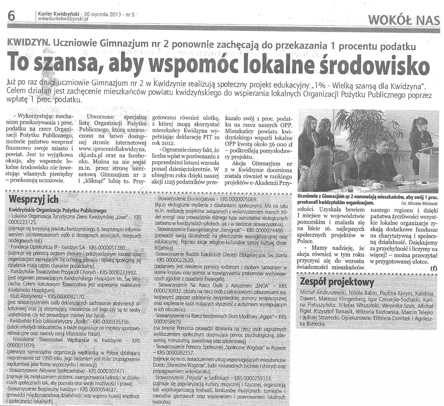To szansa, aby wspomóc lokalne środowisko ... - 30 stycznia 2013r. - Kurier Kwidzyński