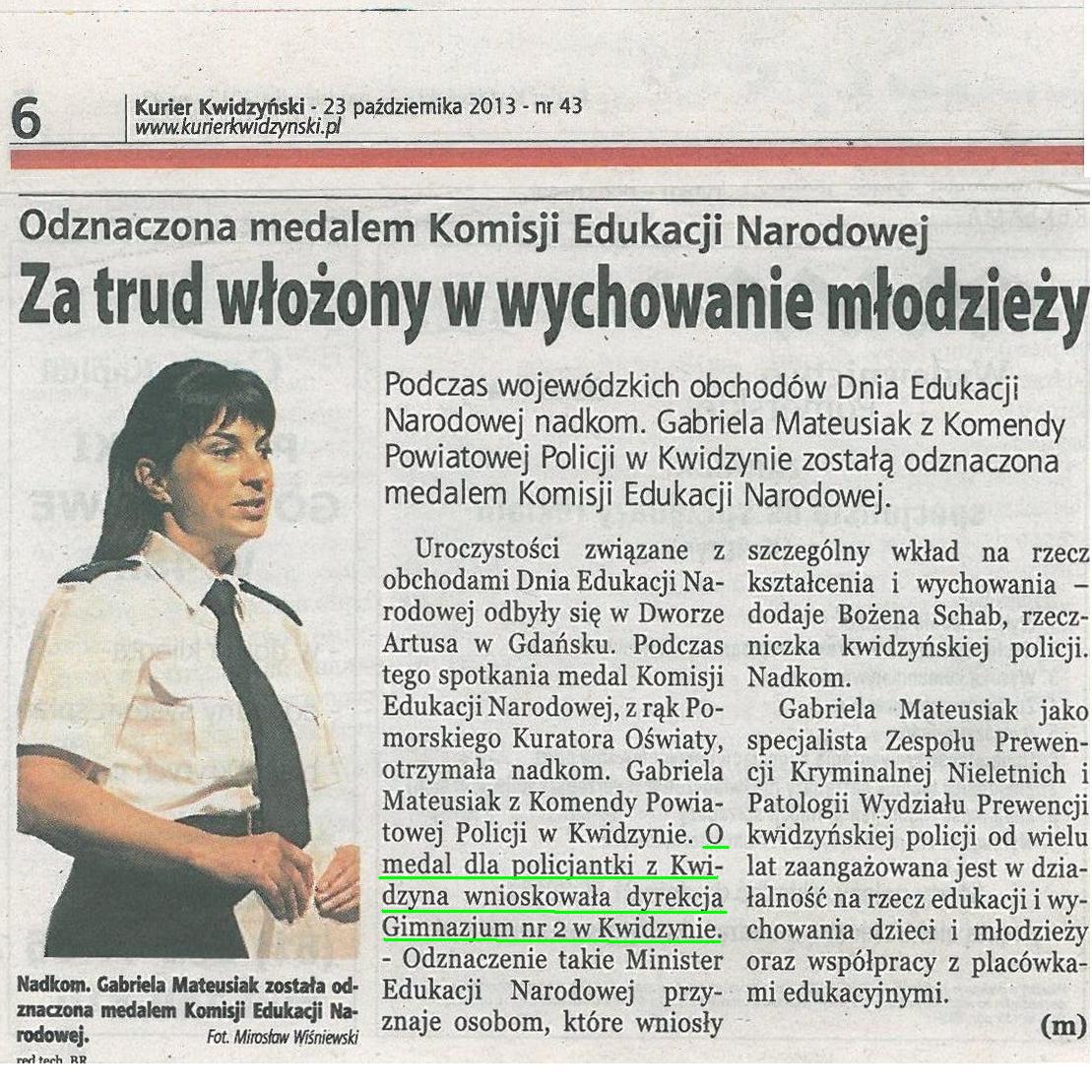 Za trud włożony w wychowanie młodzieży - 23 października 2013r. - Kurier Kwidzyński