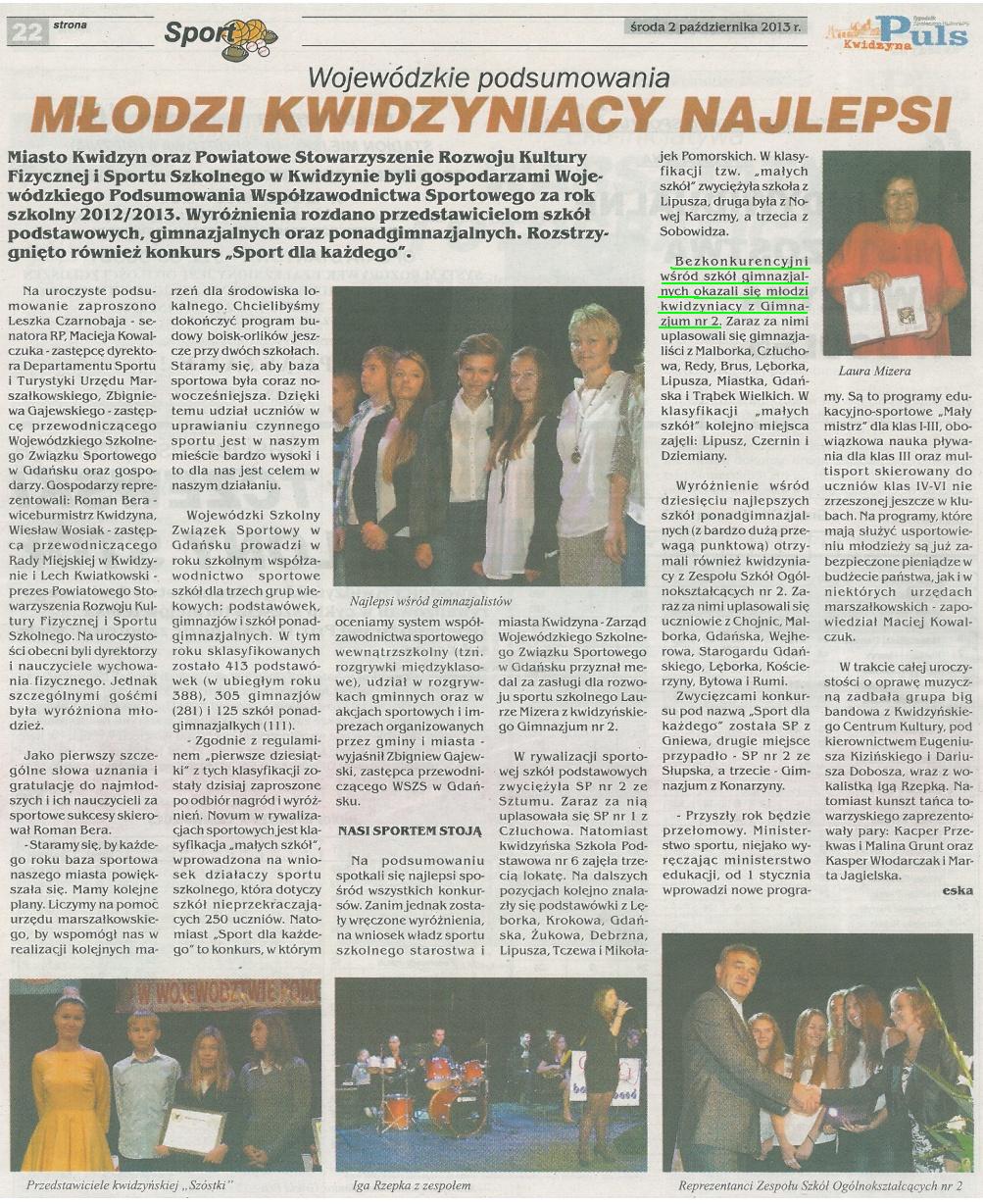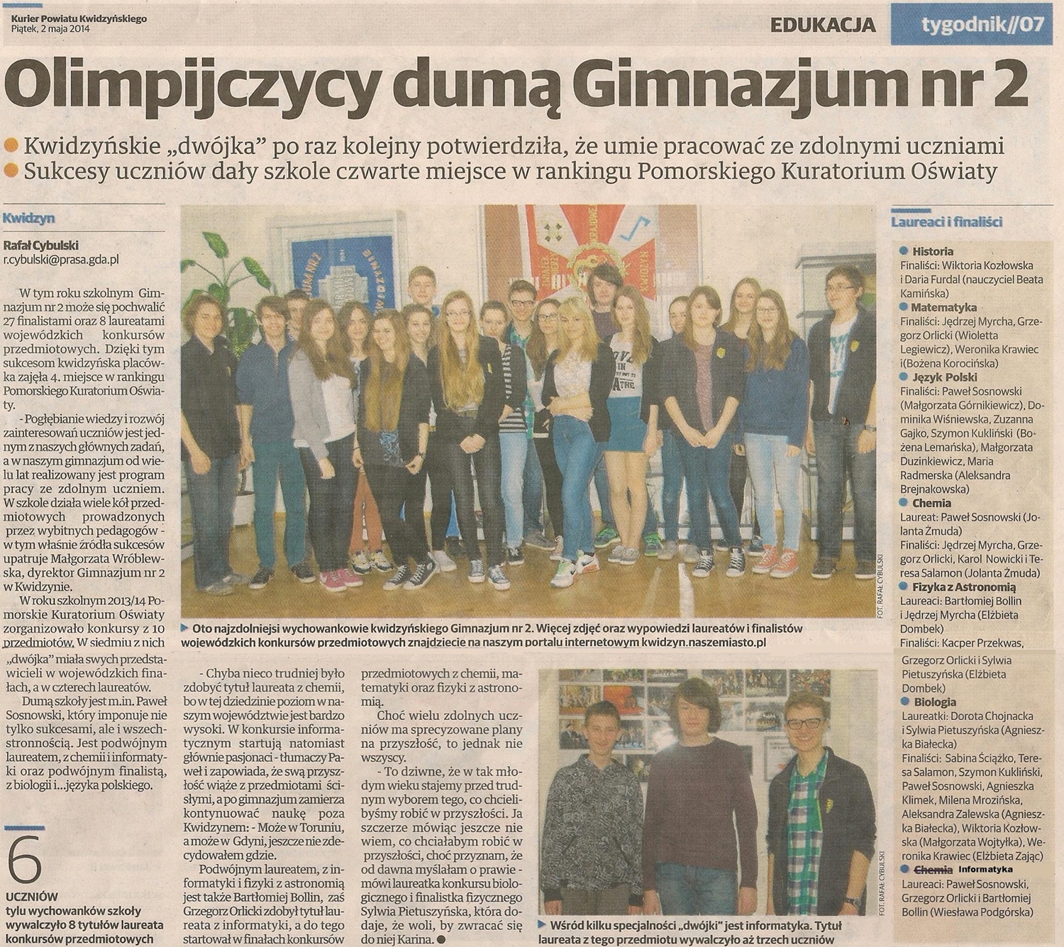 Olimpijczycy dumą Gimnazjum nr 2 - 2 maja 2014r. - Kurier Powiatu Kwidzyńskiego