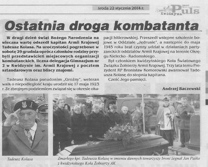Ostatnia droga kombatanta - 22 stycznia 2014r. - Puls Kwidzyna