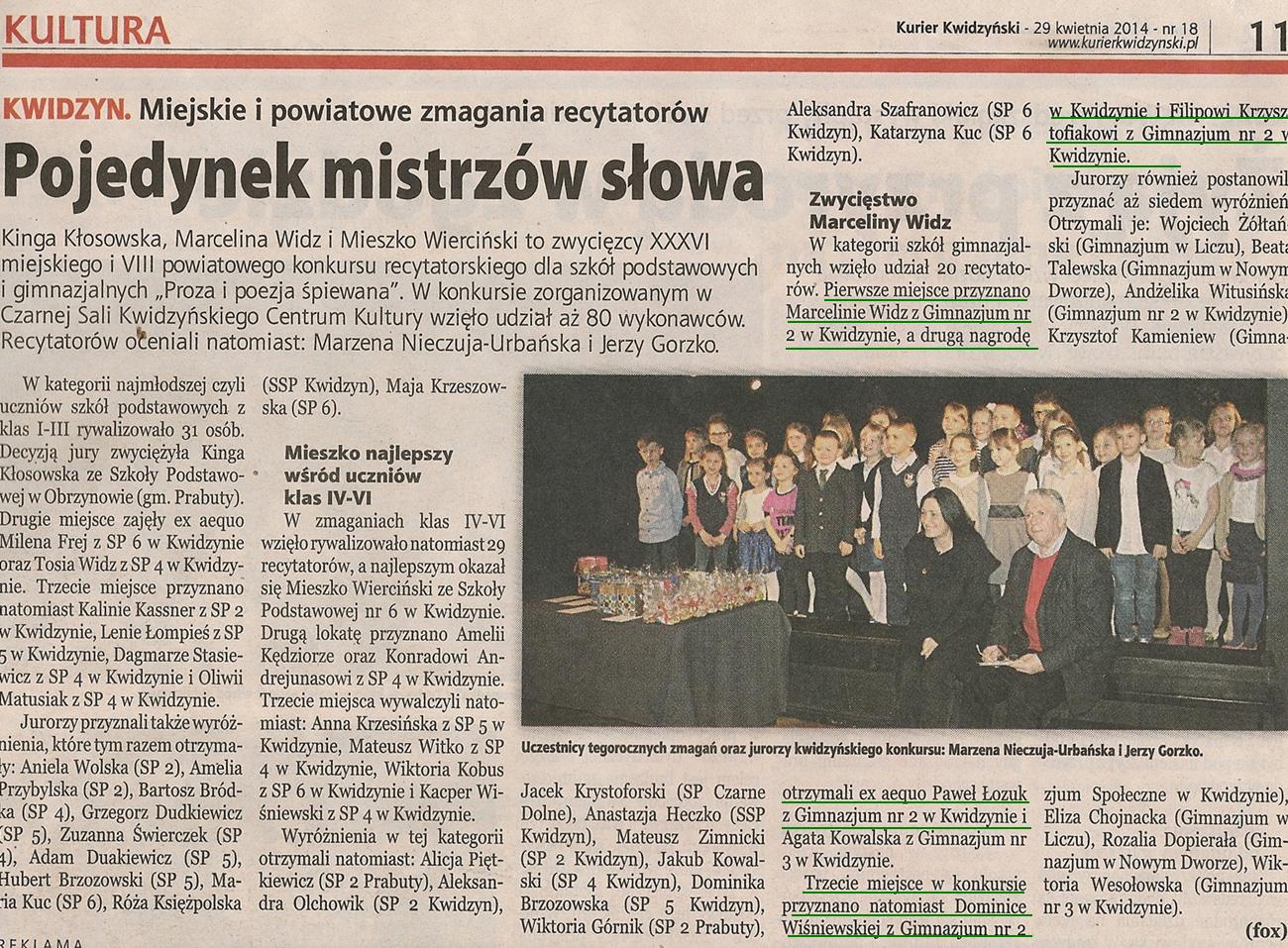 Pojedynek mistrzów słowa - 29 kwietnia 2014r. - Kurier Kwidzyński