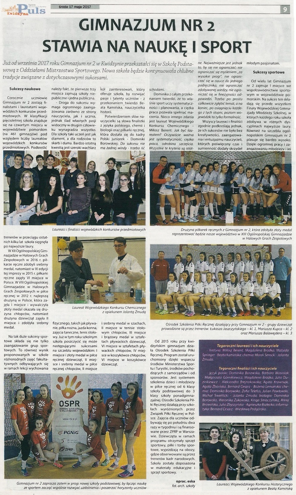 Gimnazjum nr 2 stawia na naukę i sport - 17 maja 2017r. - Puls Kwidzyna
