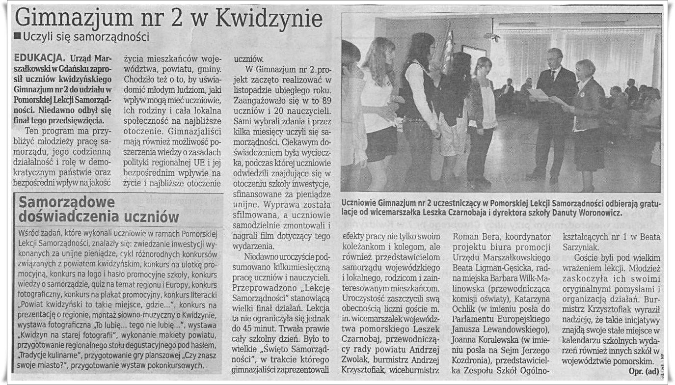 Uczyli się samorządności- 10.06.2009 r. Kurier Kwidzyński