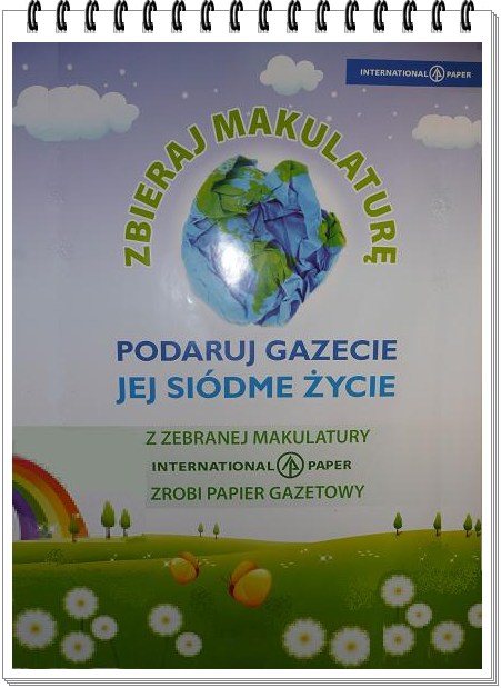 Nasza szkoła przystąpiła do akcji zbierania makulatury pt. „Podaruj gazecie jej siódme życie”. Projekt patronuje International Paper Kwidzyn sp. z o. o., a makulaturę odbiera od nas „Zielony Punkt”. Koordynatorkami projektu w szkole są p.Katarzyna Janicka i p. Agnieszka Białecka.