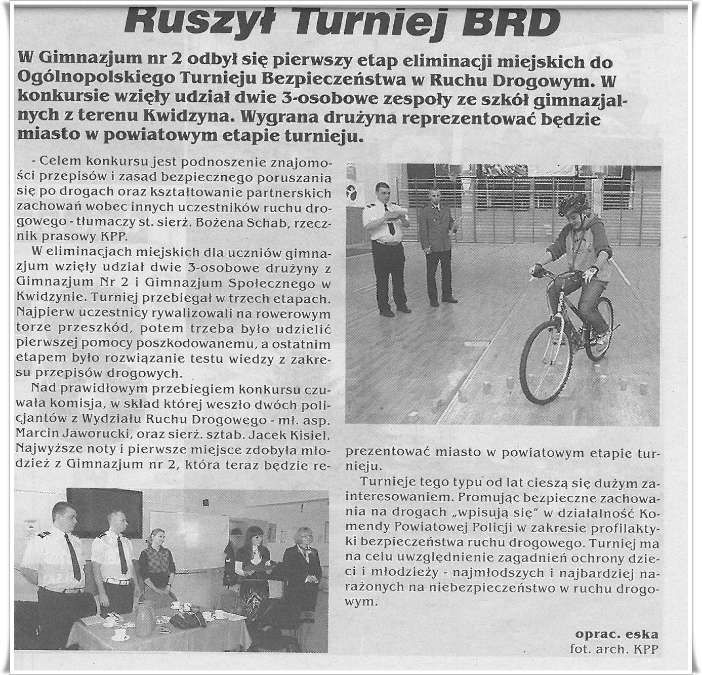 Dnia 23 marca 2012r. w naszym gimnazjum odbyły się miejskie eliminacje Ogólnopolskiego Turnieju Bezpieczeństwa w Ruchu Drogowym. Drużyna Gim-2 zajęła I miejsce i będzie reprezentowała miasto Kwidzyn na etapie powiatowym. Skład drużyny: Adam Majerowicz(3b), Marcin Wódz(3f), Nikolas Dąbrowski(2a).