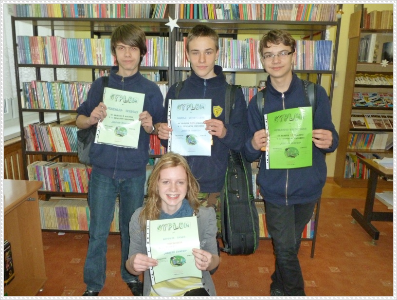 W czasie trwania w/w konkursu uczniowie naszego Gimnazjum zajęli I miejsce drużynowo oraz indywidualnie: Gratulujemy!!! |