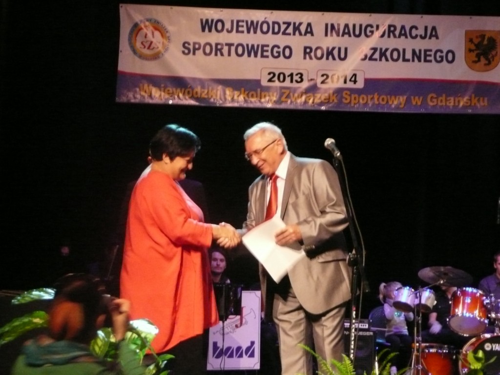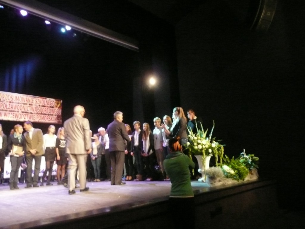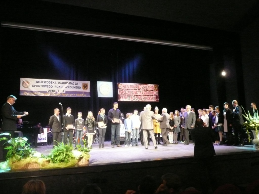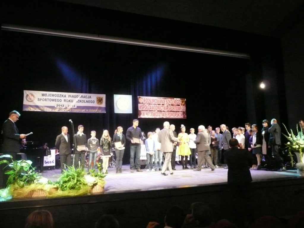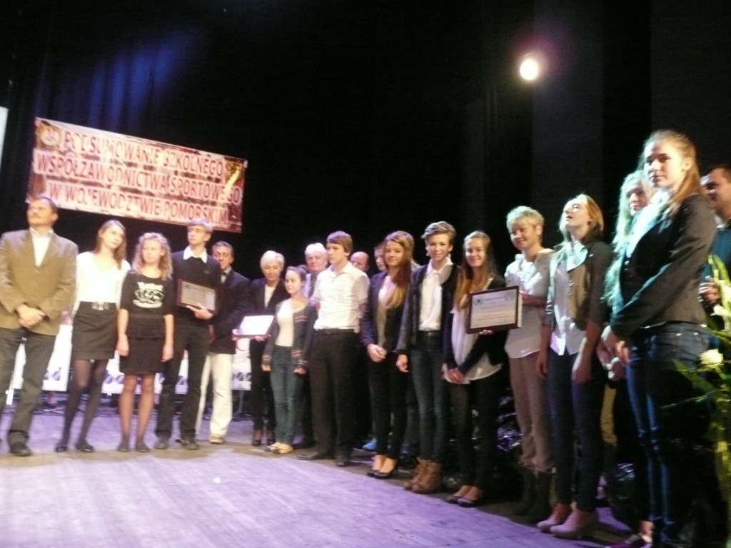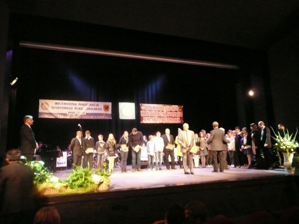 Dnia 27 września 2013r. w sali kinoteatru kwidzyńskiego odbyło się Wojewódzkie Podsumowanie Sportowego roku szkolnego 2012/13 a także inauguracja nowego roku sportowego. Gimnazjum nasze zajęło w tej rywalizacji zaszczytne I miejsce, za co zostało uhonorowane nagrodą i podziękowaniem. Reprezentantki naszej szkoły, które w znacznym stopniu przyczyniły się do sukcesu szkoły i odebrały nagrodę to: Nikola Olszewska, Nadia Bartosiak i Klaudia Kominek. |