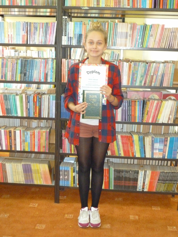 19 maja 2014 r. w Gminnym Ośrodku Kultury w Ryjewie odbył się Powiatowy Konkurs Recytatorski pod hasłem "Bądźmy razem! W domu, w szkole, w kraju i na świecie". Zadaniem uczestników było zaprezentowanie dowolnego utworu związanego z powyższym tematem. Tegoroczny regulamin dopuszczał recytowanie wierszy z podkładem muzycznym, dlatego wielu uczestników umiejętnie skorzystało z tej formy uatrakcyjnienia swojego występu. Miło jest nam poinformować, iż uczniowie naszej szkoły zdobyli w tych zmaganiach liczne czołowe lokaty: I miejsce - Paweł Łożuk z kl. I e (opiekun pani Elżbieta Kaniecka), II miejsce - Oliwia Wnuk z klasy II d (opiekun pani Bożena Lemańska), III miejsce - Katarzyna Studzińska z klasy III h (opiekun pani Bożena Lemańska), wyróżnienie - Roksana Krzemińska z klasy II d (opiekun pani Bożena Lemańska) oraz Robert Kowalski z klasy III b (opiekun pani Anna Ptak-Gnutek). Warto podkreślić, że tegoroczną NAGRODĘ SPECJALNĄ ufundowaną przez Dyrektora GOK-u otrzymała zdobywczyni II miejsca - Oliwia Wnuk. Wszystkim zwycięzcom gratulujemy tak wspaniałych sukcesów! |
