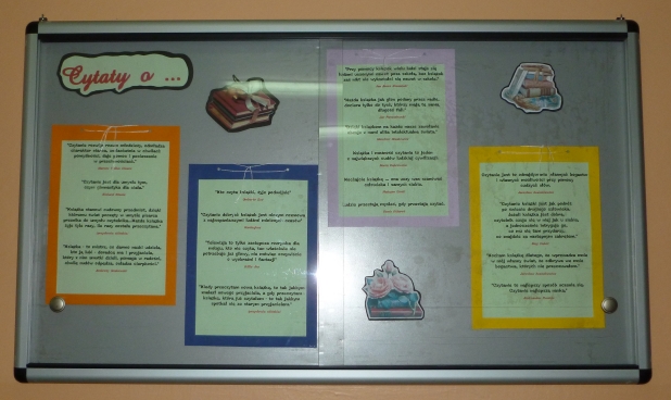 W październiku obchodziliśmy Międzynarodowy Miesiąc Bibliotek Szkolnych. Z tej okazji przygotowano wystawę poświęconą „180. rocznicy urodzin Alfreda Nobla”, gazetkę „Cytaty o książkach” oraz konkurs czytelniczy dla uczniów klas I –III - „Bohaterowie naszych książek”. Laureatami konkursu zostali: I miejsce – Dominika Wiśniewska z kl. III i II miejsce – Teresa Salamon z kl. III i, Natalia Sobczak z kl. III h, Zuzanna Gajko z kl. III i , Aleksandra Zaleska z kl. III b III miejsce – Daria Teska z kl. III h, Kinga Samborska z kl. III i Wyróżnienie – Paula Oklińska z kl. I d Gratulacje dla wszystkich uczestników konkursu!!!