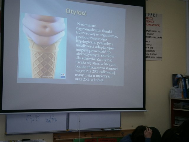W ramach konkursu „Aktywna szkoła - Aktywny uczeń” we wszystkich klasach na godzinach wychowawczych odbyły się konwersatoria. Ich celem było uporządkowanie i uzupełnienie i poszerzenie wiedzy dotyczącej przyczyn, objawów i skutków chorób związanych z nieprawidłowym odżywianiem. Ponadto na tych zajęciach podjęto również ważki, szczególnie dla młodzieży, problem akceptacji samego siebie. Do współpracy zaproszona została pielęgniarka szkolna - p. mgr Halina Drozd, która we wszystkich klasach w fachowy sposób przekazała uczniom pogłębione informacje na ten temat - zaburzeń zdrowia, u źródła których leżą m.in. złe nawyki żywieniowe. Uczniowie dowiedzieli się, że odżywianie to niezbędna i podstawowa czynność, jaką wykonuje każdy żywy organizm. Pokarm dostarcza nam wielu niezbędnych do życia składników głownie energię oraz materiał budulcowy. Nie jest więc bez znaczenia, co jemy, ponieważ nieprawidłowy tryb odżywiania może prowadzić do różnych chorób i schorzeń. Podczas zajęć uczniowie poznali przyczyny, które mogą doprowadzić do omówionych zaburzeń w odżywianiu, poznali objawy i skutki tych nieprawidłowości, wiedzą, gdzie należy szukać pomocy i wsparcia. Uczniowie nauczyli się obliczać i klasyfikować swój wskaźnik wagowo-wzrostowy. Po przeprowadzonych konwersatoriach uczniowie klas 3 w ramach ewaluacji, na lekcjach informatyki projektowali i opracowywali ulotki, broszury, informatory związane z zaburzeniami stanu zdrowia i rozwoju związanymi z nieprawidłowym odżywianiem. Najciekawsze I najwyżej ocenione prace zostały wysłane do jury konkursowego.