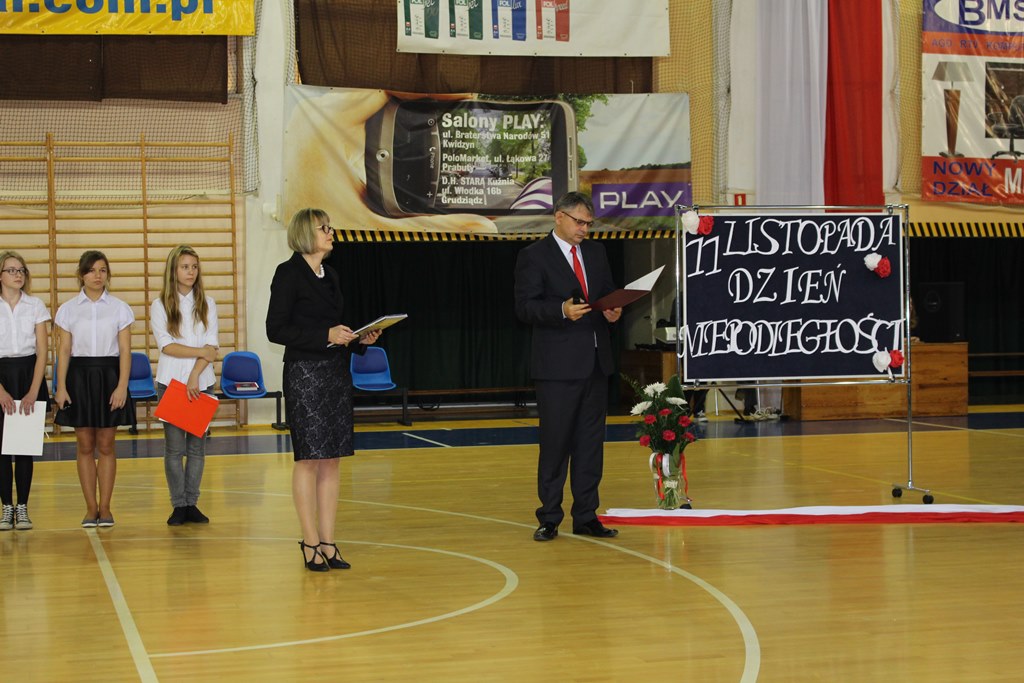 W 1918 roku, po 123 latach niewoli, Polska odzyskała niepodległość. Aby uczcić tak ważne wydarzenie, 11 listopada ustanowiono Świętem Niepodległości. Z tej okazji 12 listopada 2014 r. cała społeczność szkolna zgromadziła się w hali sportowej. Uroczystość rozpoczęto wprowadzeniem Pocztu Sztandarowego i odśpiewaniem hymnu państwowego. Następnie przedstawiciele klas II e,f,g,h,i przygotowani pod kierunkiem p. Doroty Huk-Szymańskiej, p. Elżbiety Kanieckiej, p. Justyny Szatkowskiej i p. Eligiusza Gełdona, przedstawili montaż słowno-muzyczny, który przypomniał wszystkim walkę Polaków o wolność narodu. Uczniowie w dużym skupieniu wysłuchali programu artystycznego i na zakończenie gromkimi brawami nagrodzili artystów.