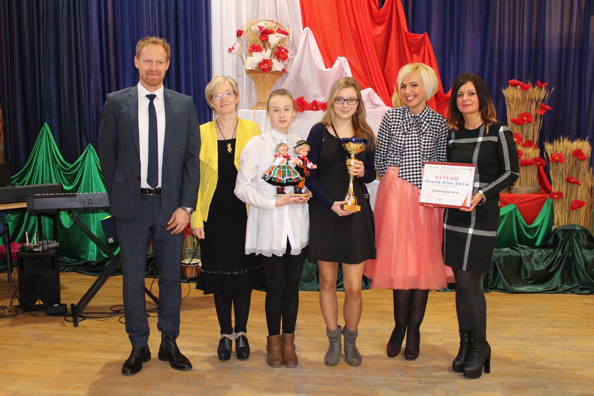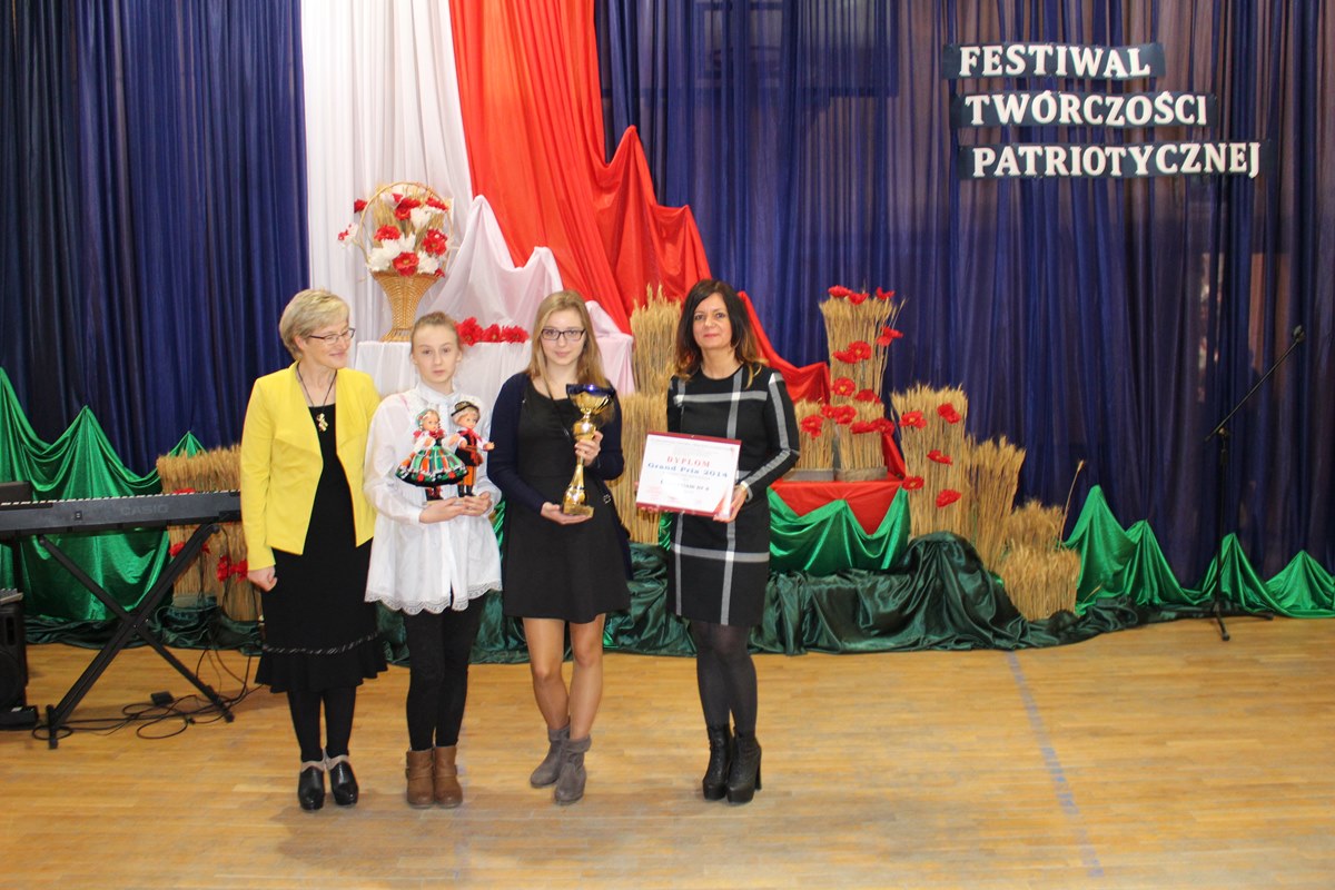 28 listopada 2014 roku w Gimnazjum nr 12 w Gdańsku odbyła się uroczysta Gala Finałowa VII Ogólnopolskiego Festiwalu Twórczości Patriotycznej, podczas której laureaci różnorodnych zmagań konkursowych odebrali puchary i dyplomy. Organizatorami festiwalu byli: Gimnazjum nr 12 w Gdańsku, Związek Nauczycielstwa Polskiego Oddział Gdańsk oraz Stowarzyszenie Miłośników Polskiej Tradycji. Impreza odbyła się pod honorowym patronatem Senatora RP prof. Edmunda Wittbrodta, Marszałka Województwa Pomorskiego, Pomorskiego Kuratora Oświaty, Rady Miasta Gdańska i Prezydenta Miasta Gdańska. Festiwalowi przyświecały zaszczytne cele, takie jak rozwijanie szacunku do tradycji oraz własnych korzeni, popularyzacja pieśni patriotycznej oraz poezji wśród dzieci i młodzieży, kształcenie tożsamości narodowej oraz uczuć patriotycznych. Miło nam oznajmić, że nasza szkoła otrzymała GRAND PRIX tego festiwalu w kategorii szkół gimnazjalnych. Na sukces ten złożyły się osiągnięcia w następujących konkursach: - Konkurs na Prezentację Multimedialną dla nauczycieli - Konkurs na Prezentację Multimedialną dla uczniów wyróżnienie - Nikola Hermanowicz z klasy III g (opiekun p. Anna Chmielewska) - Konkurs Piosenki i Pieśni Patriotycznej II miejsce - Zuzanna Lewandowska, Roksana Krzemińska (opiekunki p. Bożena Lemańska, p. Grażyna Marek-Borowska, p. Alina Tyszkowska). Serdeczne gratulacje dla wszystkich nagrodzonych!