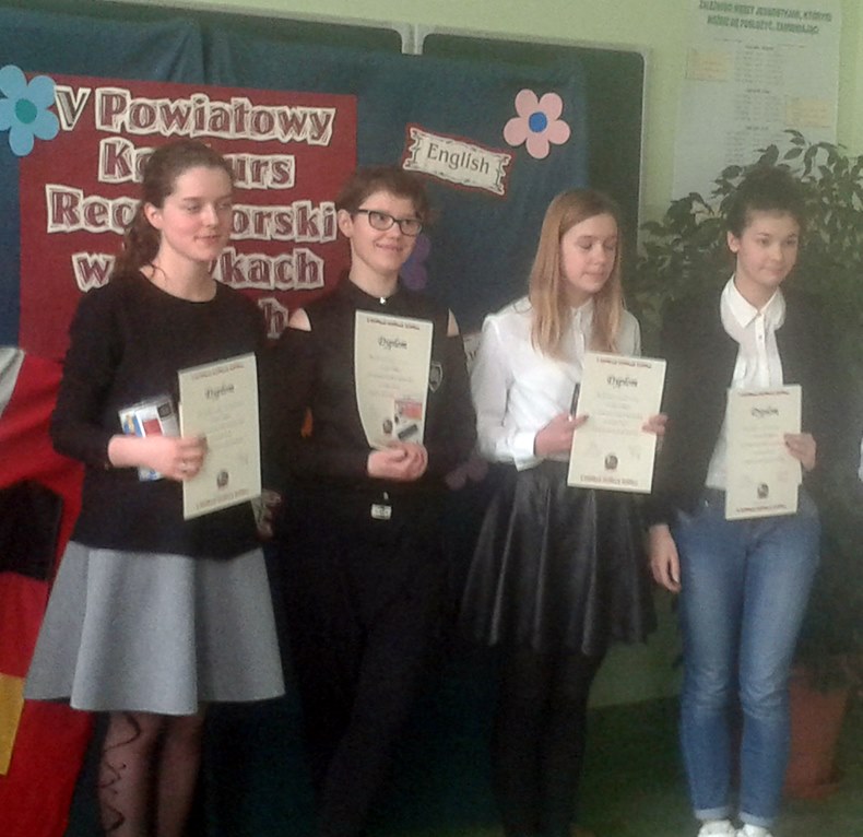 Dnia 3 czerwca 2015 r. nastąpiło rozstrzygnięcie Powiatowego Konkursu Poetycko - Literackiego pt. „Na skrzydłach wyobraźni" zorganizowanego przez p. Annę Templin i p. Alinę Tyszkowską. Na konkurs napłynęło 69 prac, w tym w kategorii "poezja" - 30 prac, a w kategorii "proza" - 39. Młodzież wykazała się w swych pracach wrażliwością, bogactwem wyobraźni i umiejętnościami literackimi.