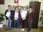 W dniu 24 października 2014r. nasze gimnazjum było organizatorem Finału Wojewódzkiej Gimnazjady w szachach. Drużyna z naszej szkoły po uprzednich zwycięstwach (7.10.2014 - mistrzostwa powiatu i 20.10.2014 - półfinał wojewódzki) zdobyła brązowy medal. Skład drużyny: Woelk Dominika, Kacper Lasota, Marysia Redmerska i Jakub Redmerski. GRATULACJE ! |