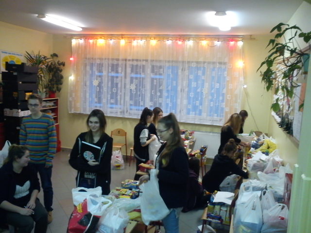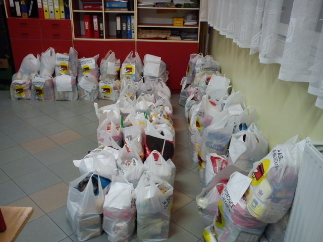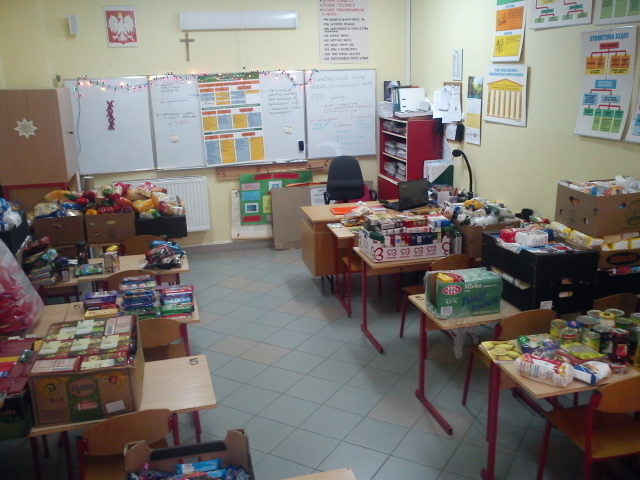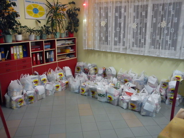 W dniach od 17 listopada 2014r. do dnia 19 grudnia 2014r. Szkolne Koło CARITAS na terenie naszego Gimnazjum przeprowadziło zbiórka produktów spożywczych na rzecz najbardziej ubogich i potrzebujących uczniów społeczności naszej szkoły i ich rodzin. W akcję włączyli się uczniowie i nauczyciele naszej szkoły. W ramach współpracy uczniowie naszego Gimnazjum, pod kierunkiem pani A. Białeckiej, pracowali w marketach pakując zakupy. W wyniku ich pracy otrzymaliśmy produkty żywnościowe. Część ofiarodawców pragnęła zachować anonimowość.