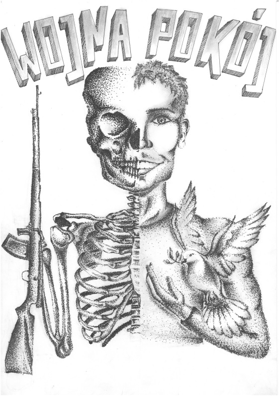 Uczniowie stworzyli prace plastyczne, które były wypowiedziami na temat otaczającej rzeczywistości, w kontekście prawa do życia w świecie wolnym od wojen. Na szczególne wyróżnienie zasługują prace Marii Redmerskiej i Aleksandry Machalewskiej z 3 b.