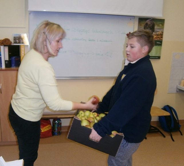 W piątek 24 października br. Samorząd Uczniowski promował w naszej szkole zdrowy styl odżywiania. Wszyscy uczniowie i pracownicy szkoły zostali poczęstowani jabłkami. Owoce otrzymaliśmy od polskich sadowników za pośrednictwem PCK Kwidzyn i hurtowni napojów "Perła" w Kwidzynie. Bardzo dziękujemy ofiarodawcom za smaczny i zdrowy podarunek.