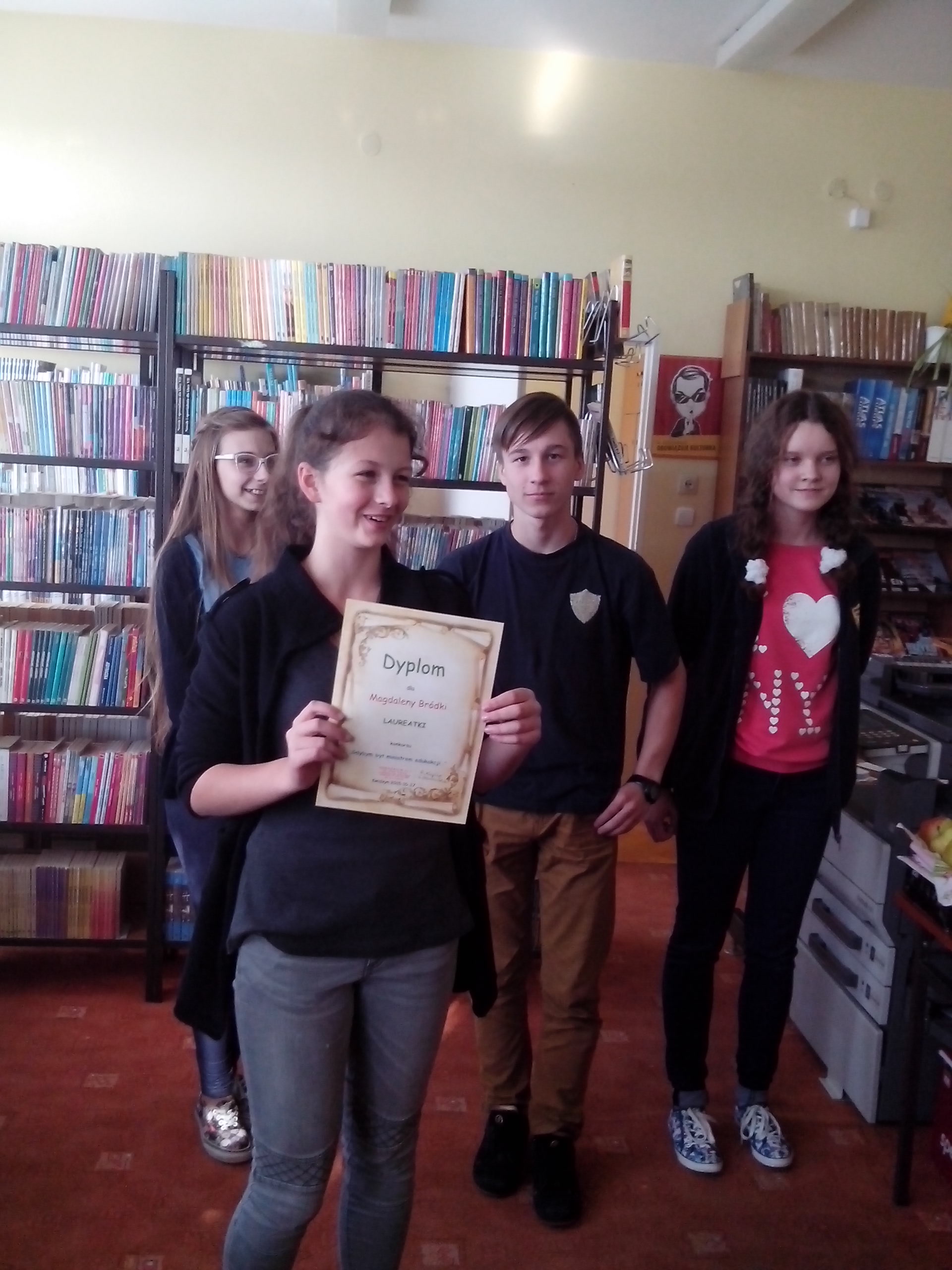 Opiekunami tej grupy uczniów były p. Bożena Lemańska, p. Grażyna Marek – Borowska, p.Aleksandra Brejnakowska i p. Anna Ptak – Gnutek. Uroczyste wręczenie nagród i dyplomów odbyło się 8 listopada w Sali Myślistwa na Zamku Kwidzyńskim. W konkursie brały udział także inne gimnazja: Gimnazjum Społeczne w Kwidzynie, Zespół Szkół w Sadlinkach, Gimnazjum Wandowo, Gimnazjum Nebrowo Wielkie, Gimnazjum Ryjewo i Gimnazjum Licze.