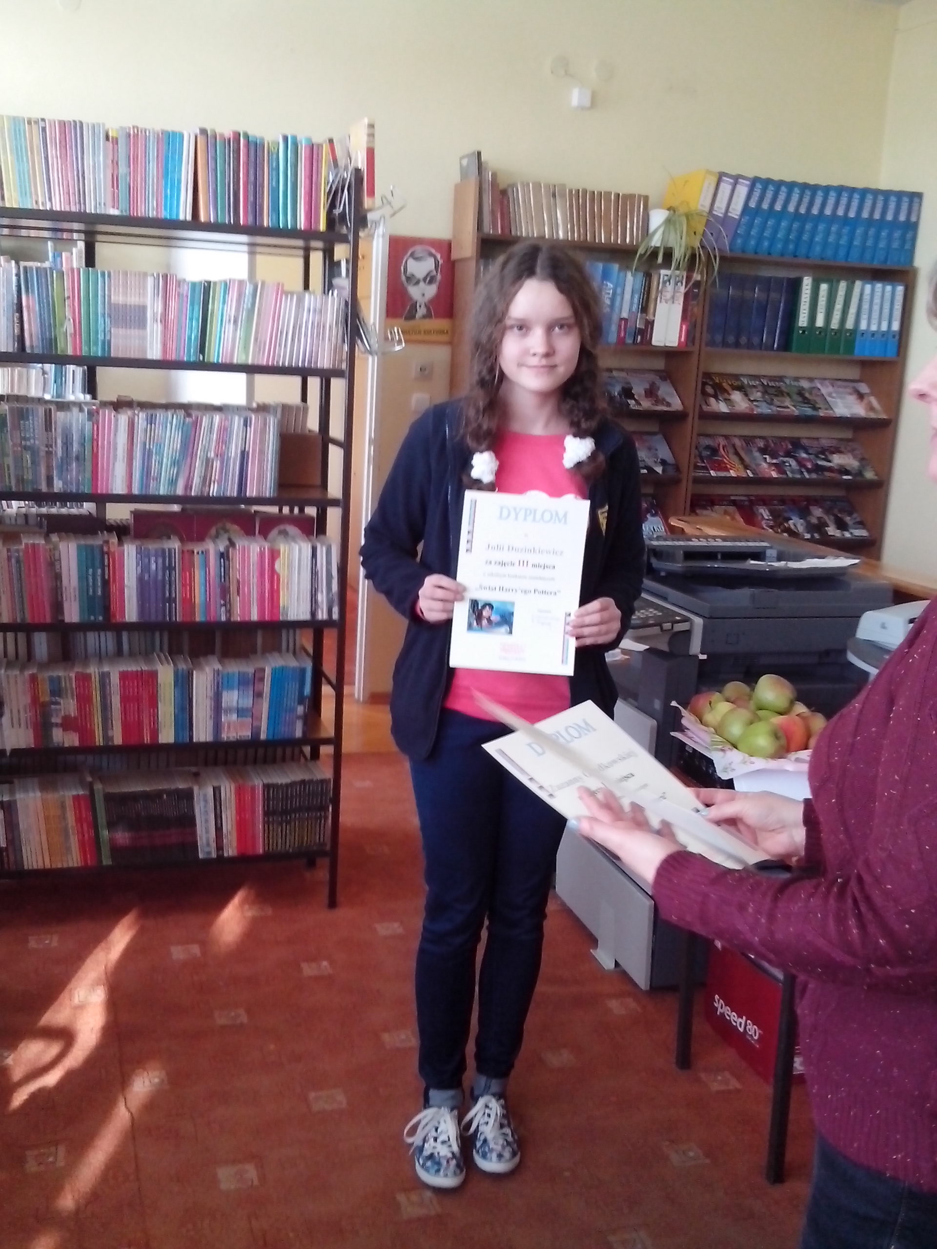 W październiku obchodziliśmy Międzynarodowy Miesiąc Bibliotek Szkolnych. Z tej okazji dla uczniów przygotowano wiele atrakcji i konkursów: • „Dzień Otwartych Drzwi”. Uczniowie mogli swobodnie poruszać się między regałami i samodzielnie dokonywać wyboru książek. • Konkurs literacki dla uczniów klas I-III - „Gdybym był ministrem edukacji…” • 06 października konkurs czytelniczy dla kl. I- III – „Saga o Wiedźminie” • 13 października konkurs czytelniczy dla kl. I - III – „Opowieści z Narnii” • 20 października konkurs czytelniczy dla kl. I - III – „Świat Harry’ego Pottera” Wyniki konkursów: „Saga o Wiedźminie” Laureat: Kamil Nowak kl. I c Wyróżnienia: Maciej Nieścigorski kl. II i, Filip Rewiński kl. I e „Opowieści z Narnii” Wyróżnienie: Mateusz Talewski kl. I f „Świat Harry’ego Pottera” I miejsce: Anna Nowicka kl. I h II miejsce: Zuzanna Gradkowska kl. I a III miejsce: Ewa Rośleń kl. I c, Julia Duzinkiewicz kl. I c Laureaci konkursu „Gdybym był ministrem edukacji…” proza Agnieszka Kwiecińska kl. III H Radomir Tamulewicz kl. II B poezja Magdalena Bródka kl. I C Adrianna Sejka kl. II C Adrianna Szczotka kl. II B Gratulacje dla wszystkich uczestników konkursu!!! |
