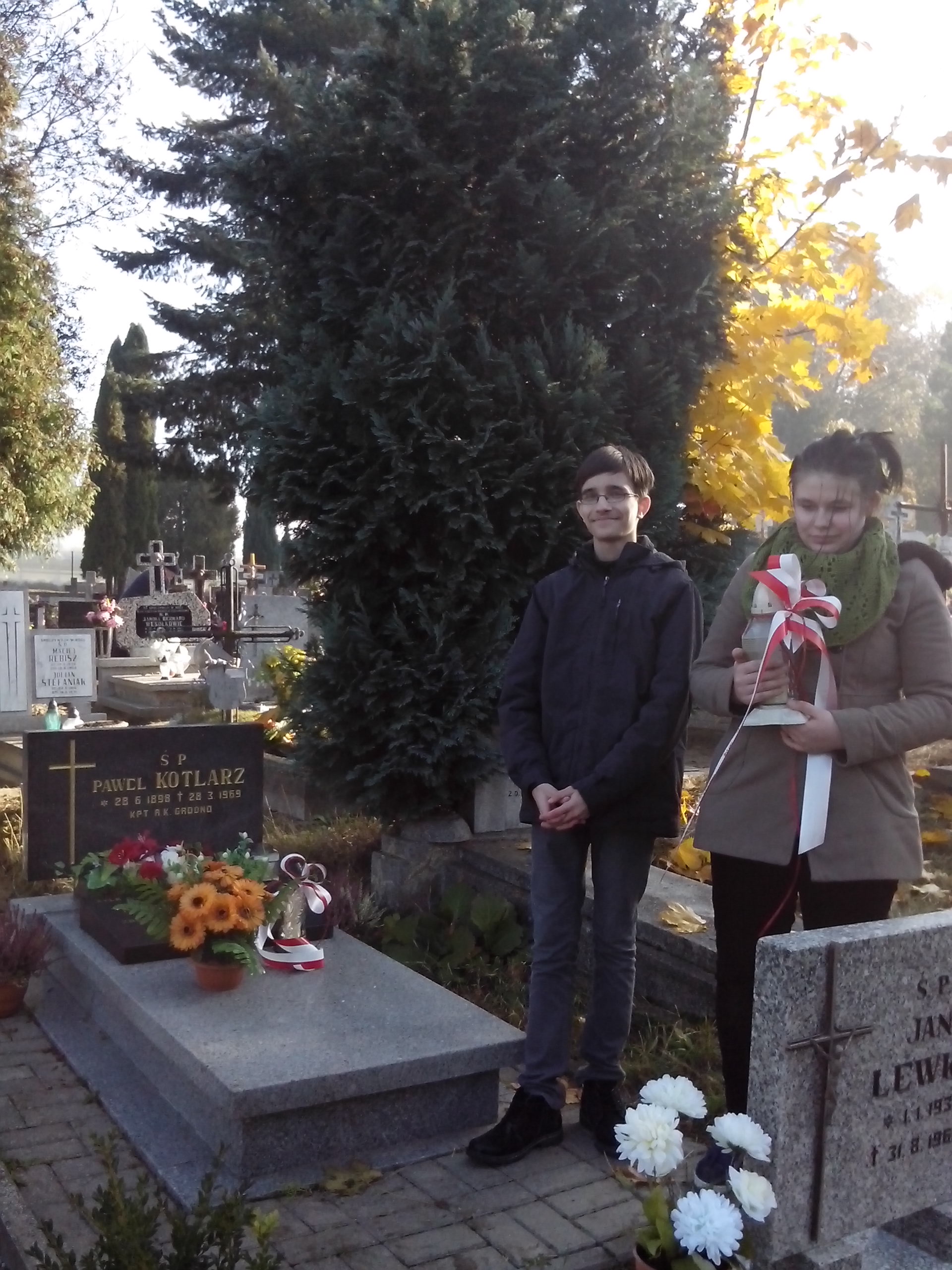 28 października z okazji zbliżającego się Święta Wszystkich Świętych przedstawiciele społeczności uczniowskiej: Weronika Ćwiklińska z kl. III i oraz Arkadiusz Grabowski z kl. III i wraz z nauczycielami bibliotekarzami p. Renatą Bielawską-Kapicą i p. Sylwią Wardaszką udali się na cmentarz kwidzyński, by zapalić znicze na grobach żołnierzy Armii Krajowej, którzy odeszli na „wieczną wartę”. |