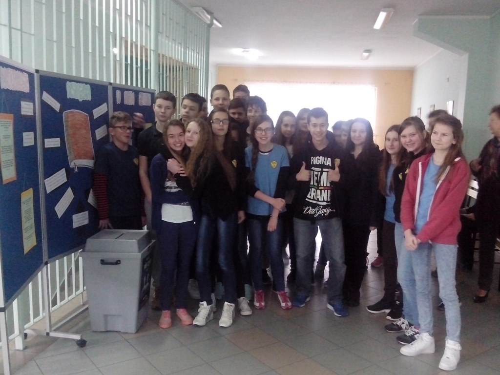 Uczniowie Gimnazjum nr 2 im. A.K. w Kwidzynie przystąpili do programu „Młodzi głosują” zorganizowanych przez CEO, a koordynowanego przez nauczyciela WOS p. Katarzynę Janicką. Na lekcjach WOS-u uczniowie zapoznawali się z zasadami wyborów demokratycznych oraz komitetami wyborczymi biorącymi udział w wyborach parlamentarnych w roku 2015. Uczniowie koła WOS przygotowali dla społeczności szkolnej materiały informacyjne na temat zasad głosowania oraz informacje prezentujące komitety wyborcze. Uczniowie wykonywali również plakaty z hasłami zachęcającymi do wzięcia udziału w wyborach. Wszystko to zostało umieszczone na gazetce w holu szkoły. Dnia 19 X 2015 roku w szkole przeprowadzono Młodzieżowe Wybory Parlamentarne w których wzięli udział uczniowie klas I, II i III. Uczniowie mogli głosować w myśl zasad demokratycznych wyborów, na przerwach lub przed i po lekcjach. Nad przebiegiem wyborów czuwała Młodzieżowa Komisja Wyborcza w składzie: